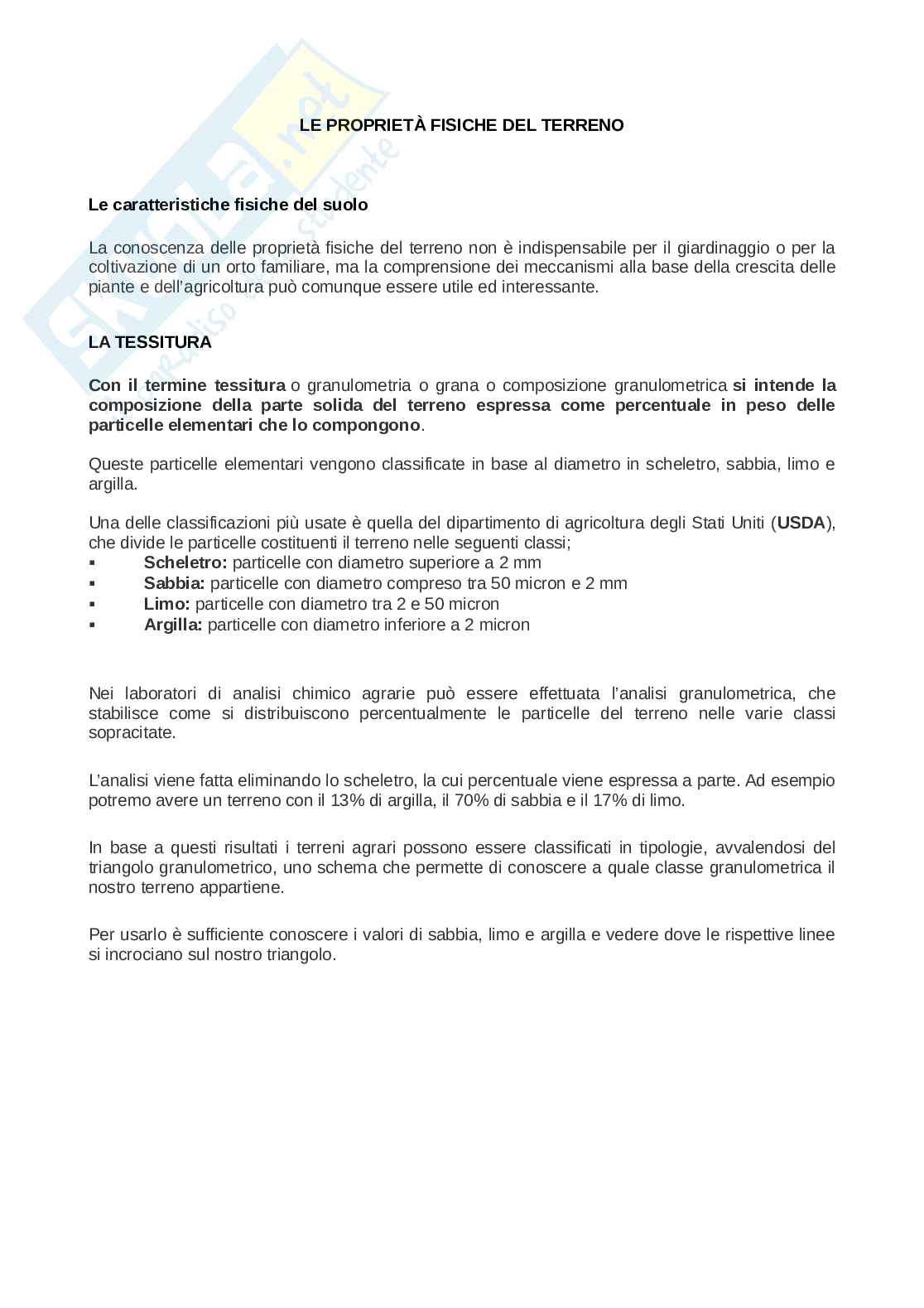 LE PROPRIETÀ FISICHE DEL TERRENO