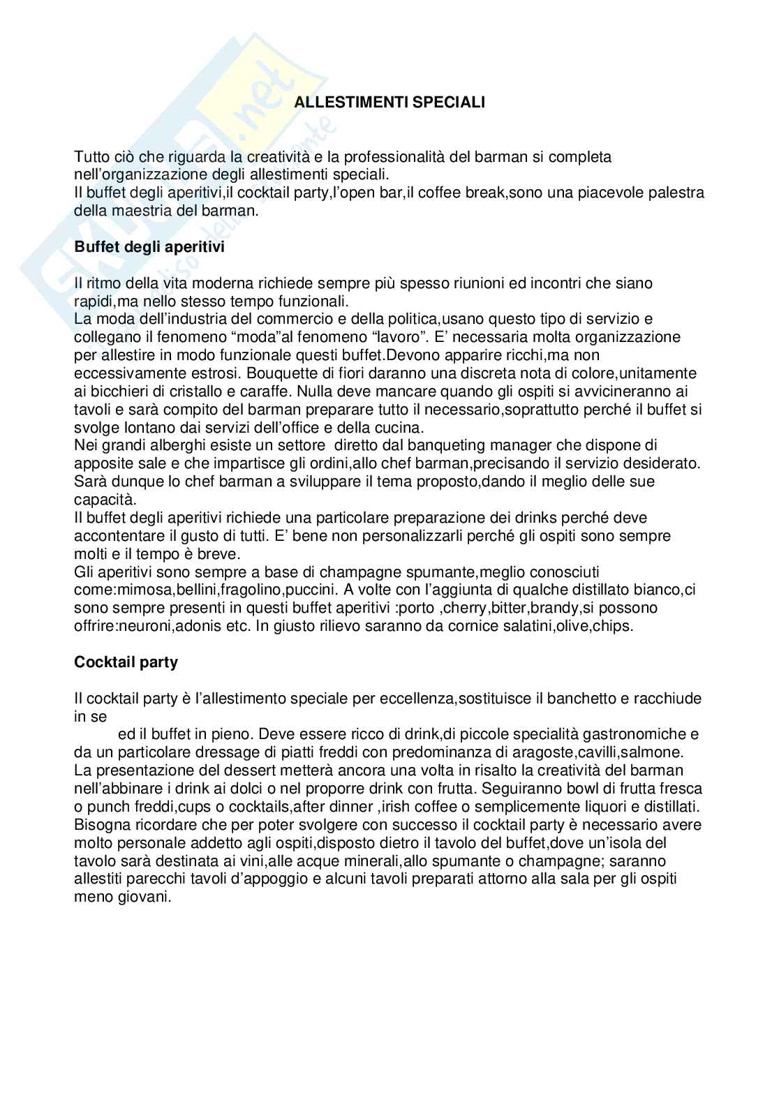 tavoli e sarà compito del barman preparare tutto il necessario,soprattutto perché il buffet si