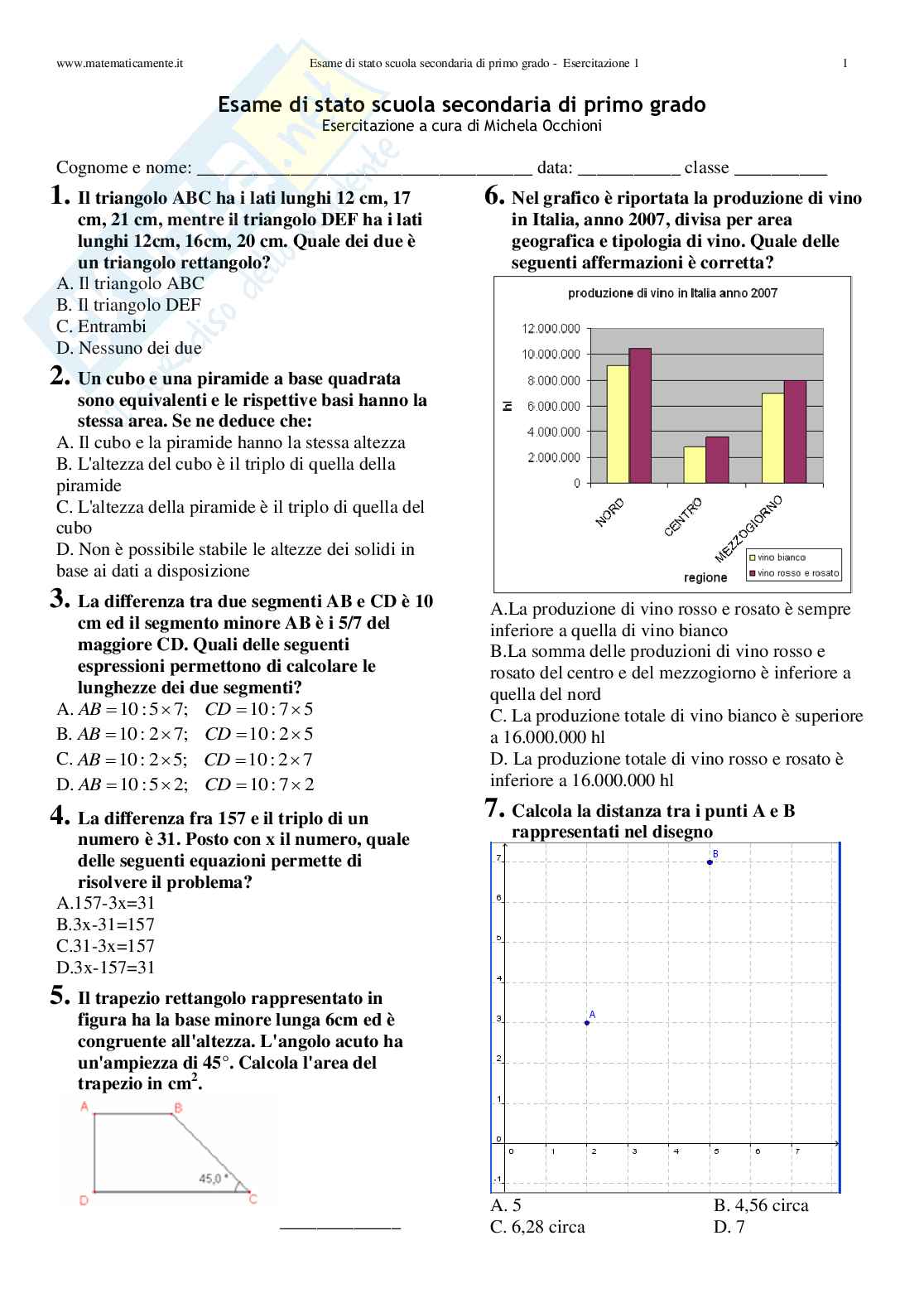 www.matematicamente.it Esame di stato scuola secondaria di primo grado - Esercitazione 1 4