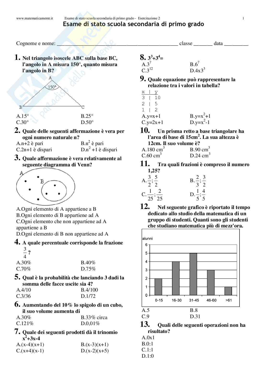 www.matematicamente.it Esame di stato scuola secondaria di primo grado - Esercitazione 2 1