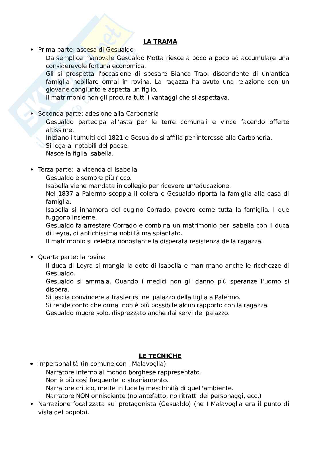 - Narrazione focalizzata sul protagonista (Gesualdo)