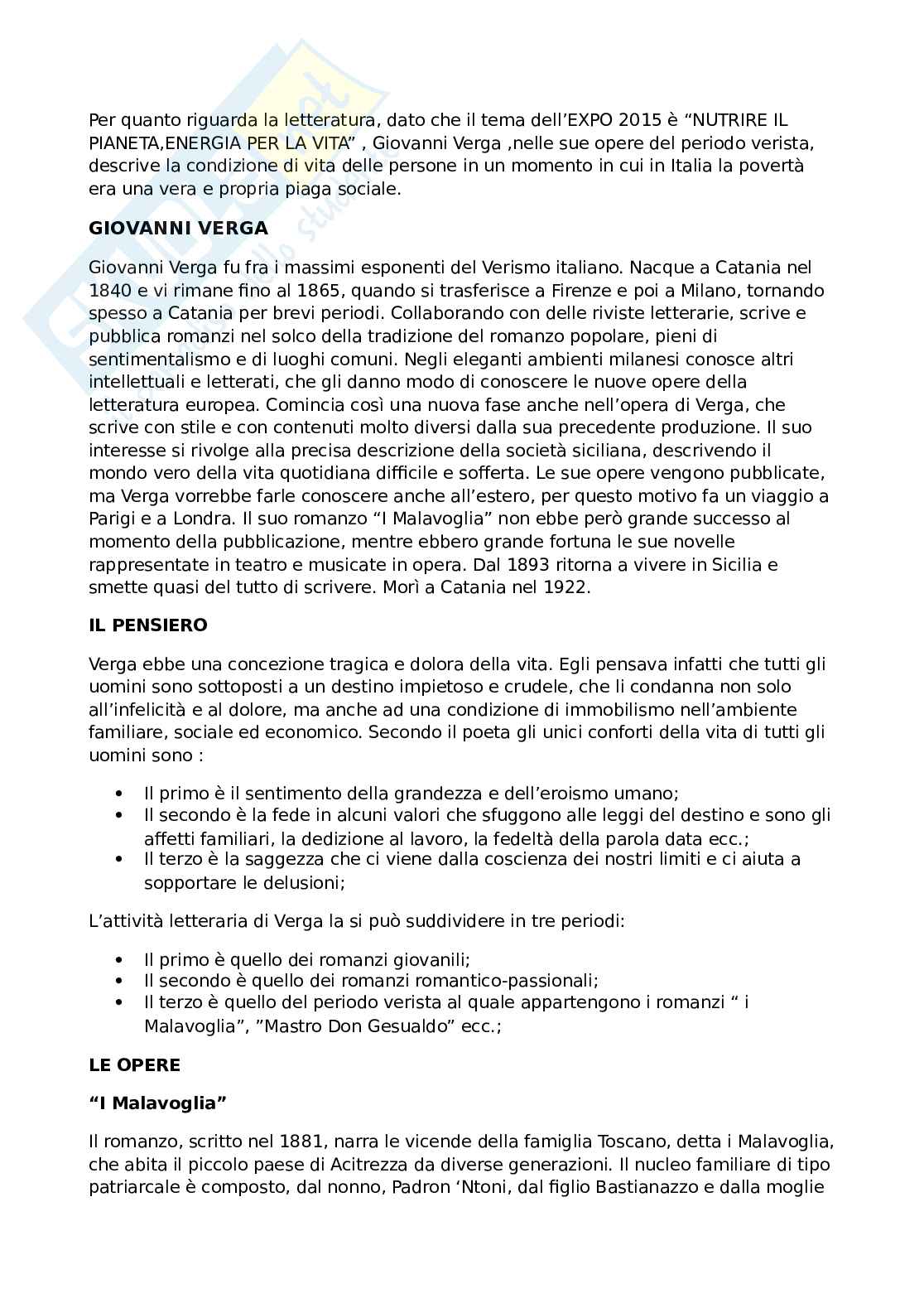 PIANETA,ENERGIA PER LA VITA” , Giovanni Verga ,nelle sue opere del periodo verista,