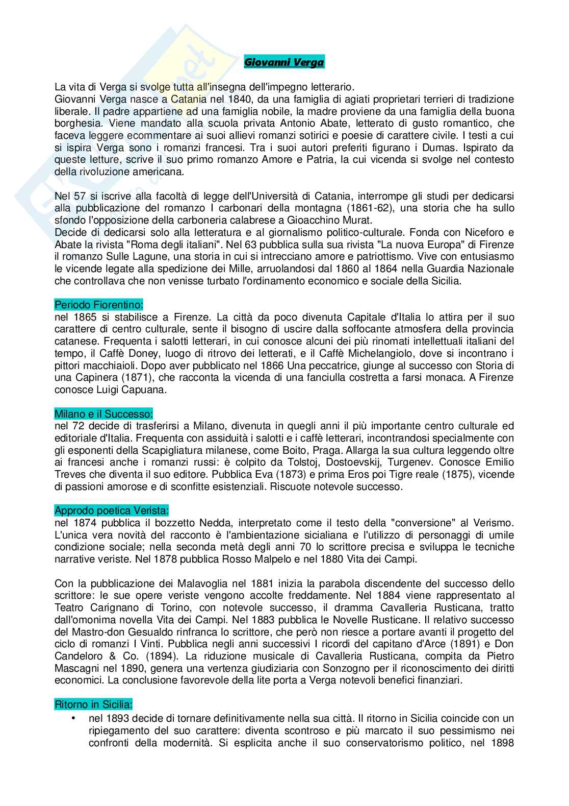 La vita di Verga si svolge tutta all'insegna dell'impegno letterario.