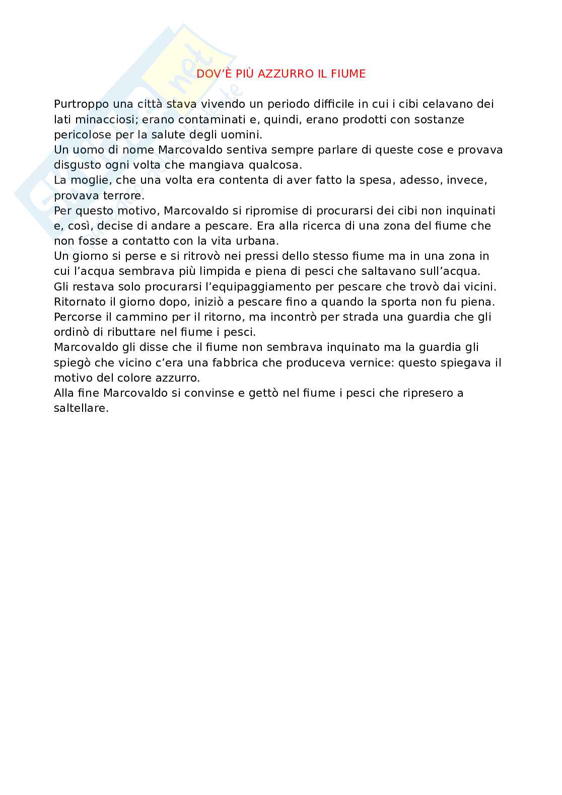 Marcovaldo gli disse che il fiume non sembrava inquinato ma la guardia gli spiegò che vicino c’era una fabbrica che produceva vernice: questo spiegava il motivo del colore azzurro.