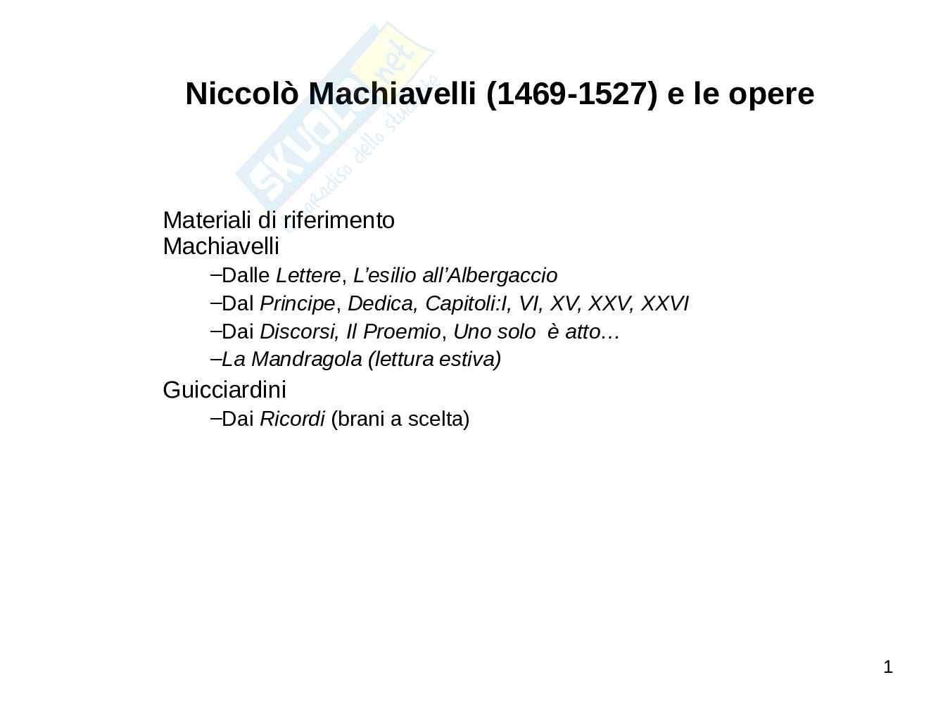 • 1469 Nasce a Firenze da Bernardo Machiavelli, dottore in legge