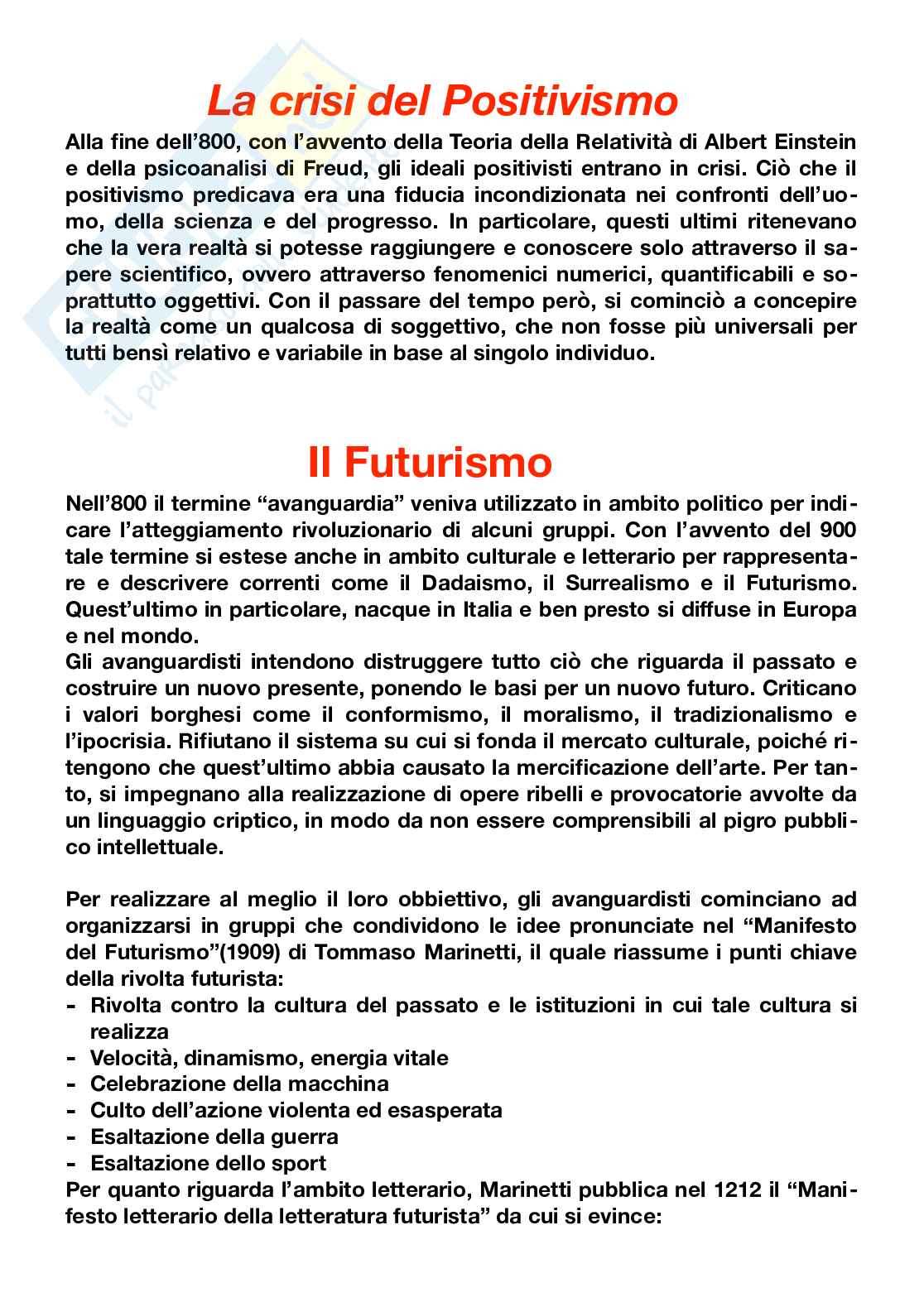 Alla fine dell’800, con l’avvento della Teoria della Relatività di Albert Einstein e della psicoanalisi di Freud, gli ideali positivisti entrano in crisi. Ciò che il positivismo predicava era una fiducia incondizionata nei confronti dell’uo- mo, della scienza e del progresso. In particolare, questi ultimi ritenevano che la vera realtà si potesse raggiungere e conoscere solo attraverso il sa- pere scientifico, ovvero attraverso fenomenici numerici, quantificabili e so- prattutto oggettivi. Con il passare del tempo però, si cominciò a concepire la realtà come un qualcosa di soggettivo, che non fosse più universali per tutti bensì relativo e variabile in base al singolo individuo.