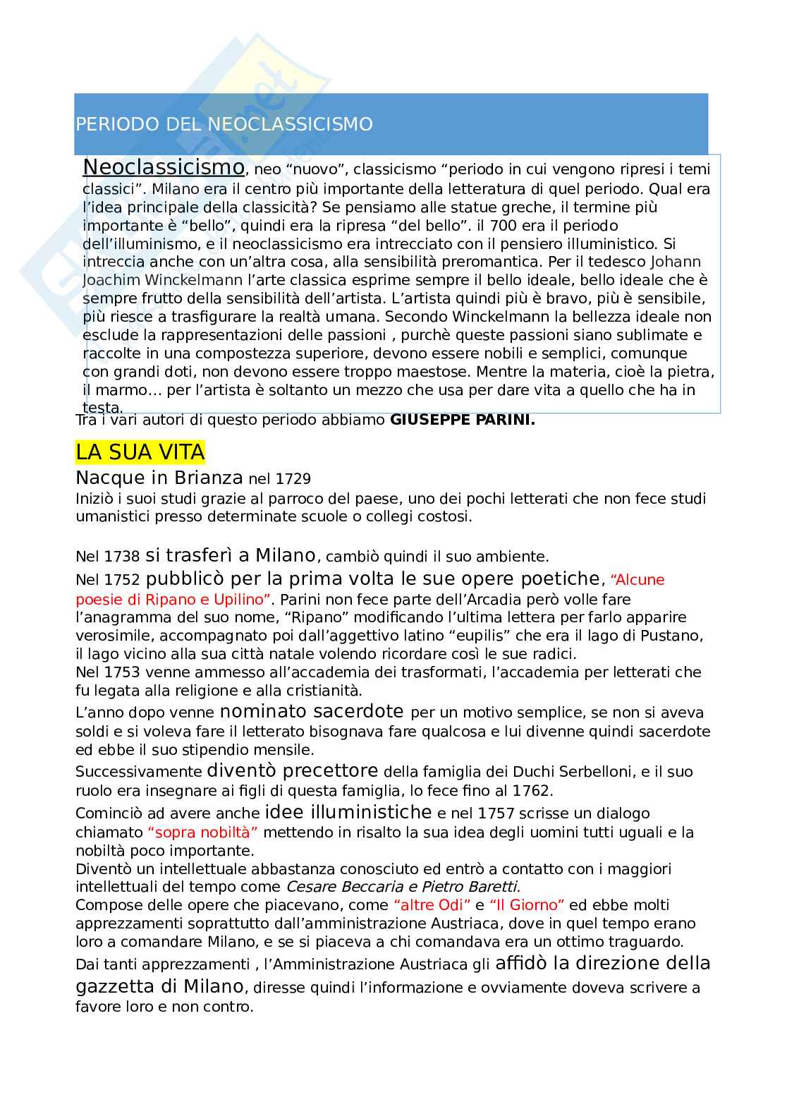 Tra i vari autori di questo periodo abbiamo GIUSEPPE PARINI.