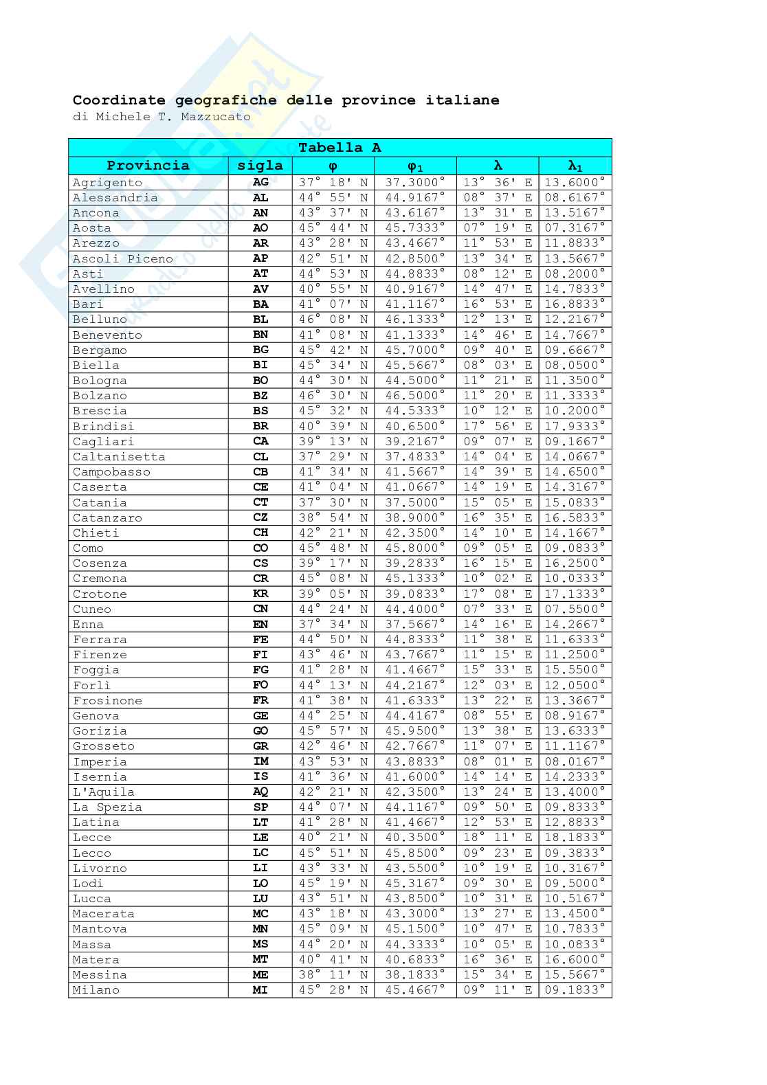 φ latitudine in gradi decimalizzati