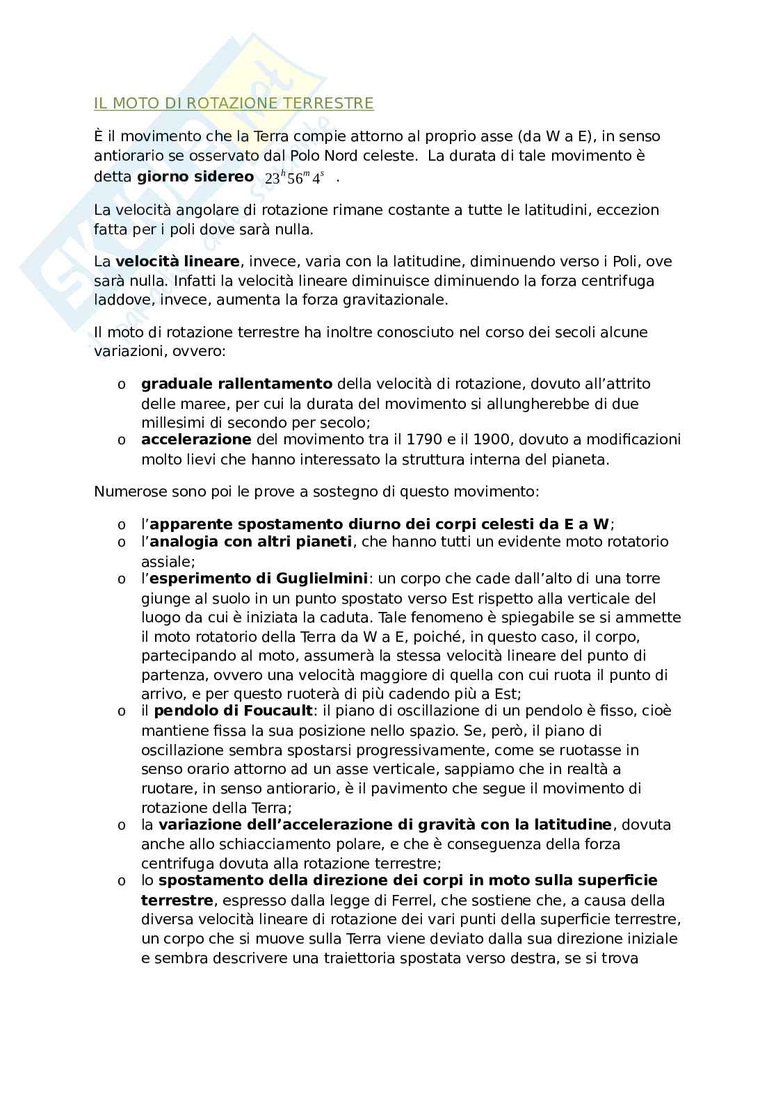 Il moto di rotazione terrestre