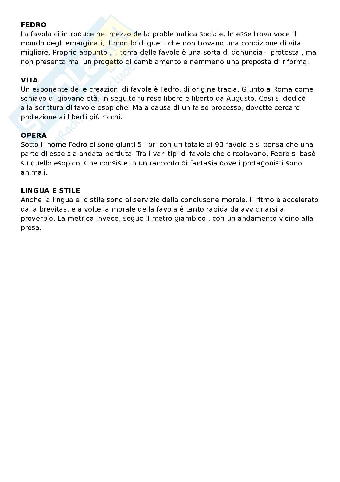 Un esponente delle creazioni di favole è Fedro, di origine tracia. Giunto a Roma come schiavo di giovane età, in seguito fu reso libero e liberto da Augusto. Cosi si dedicò alla scrittura di favole esopiche. A causa di un falso processo egli dovette cercare protezione ai liberti più ricchi.