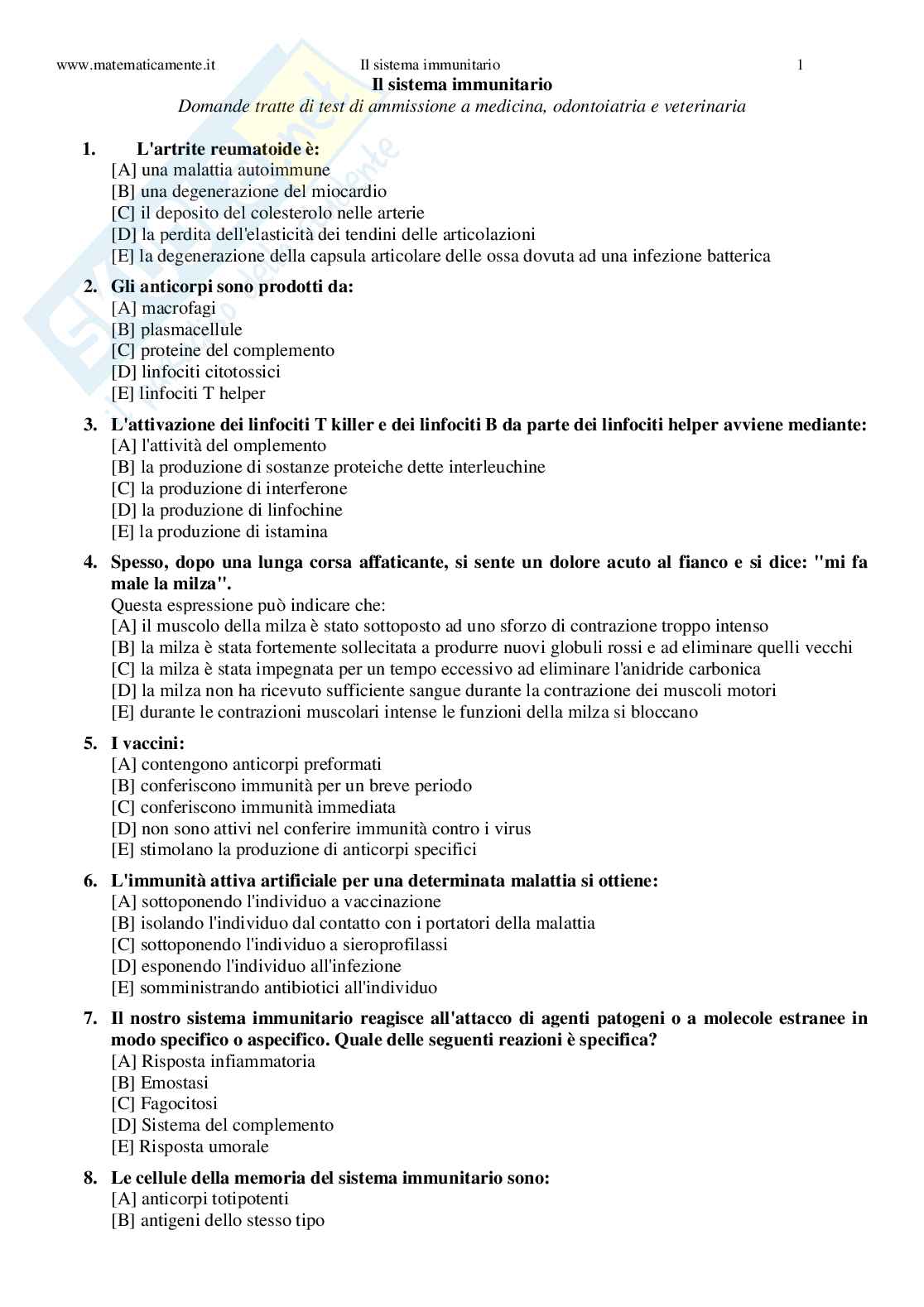 8. [E] Le cellule della memoria sono dei particolari tipi di linfociti B che si originano per la prima volta