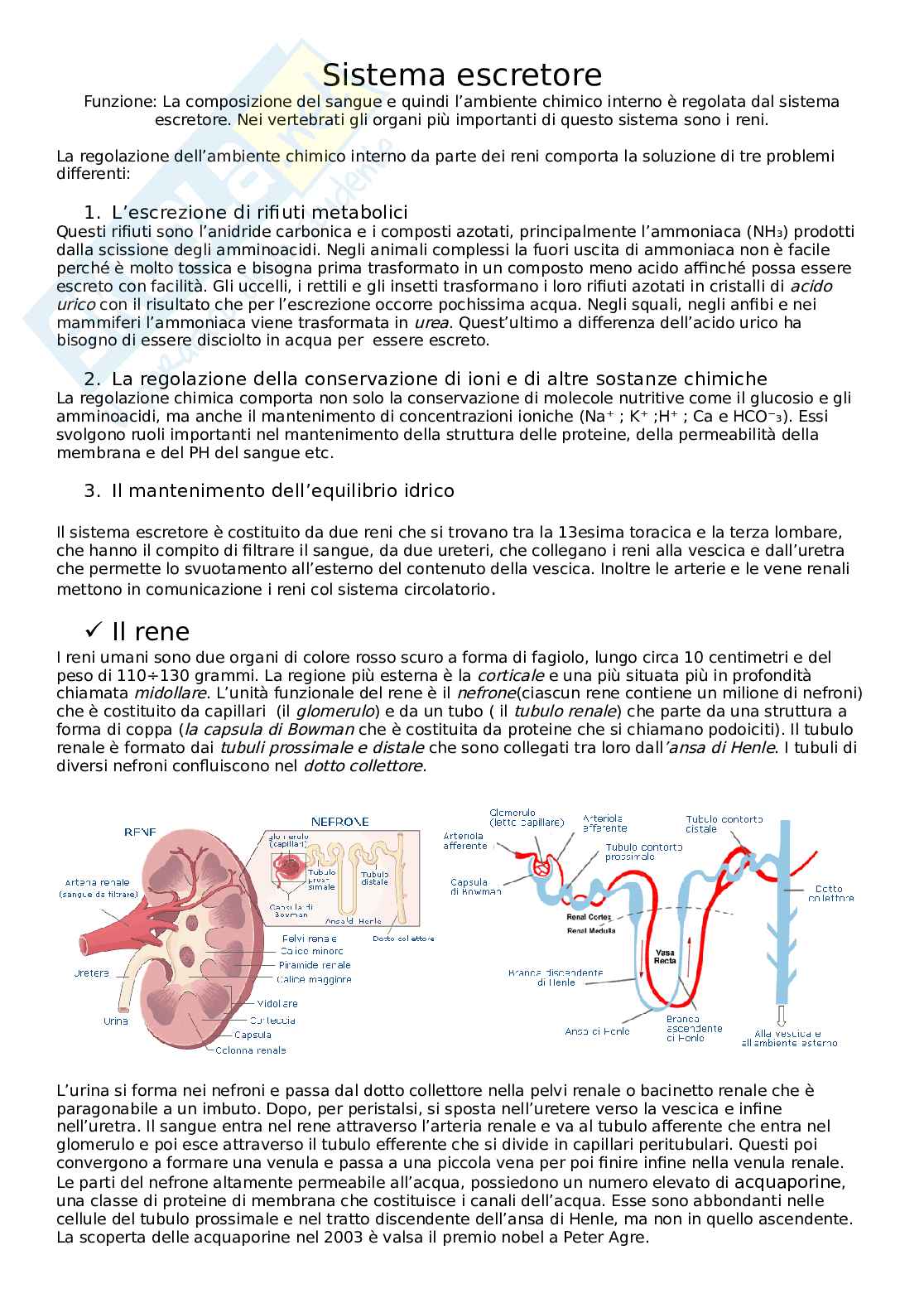 escretore. Nei vertebrati gli organi più importanti di questo sistema sono i reni.