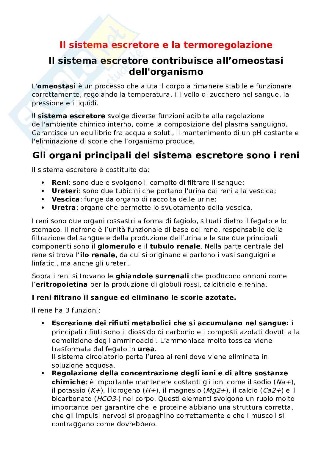 Il sistema escretore e la termoregolazione