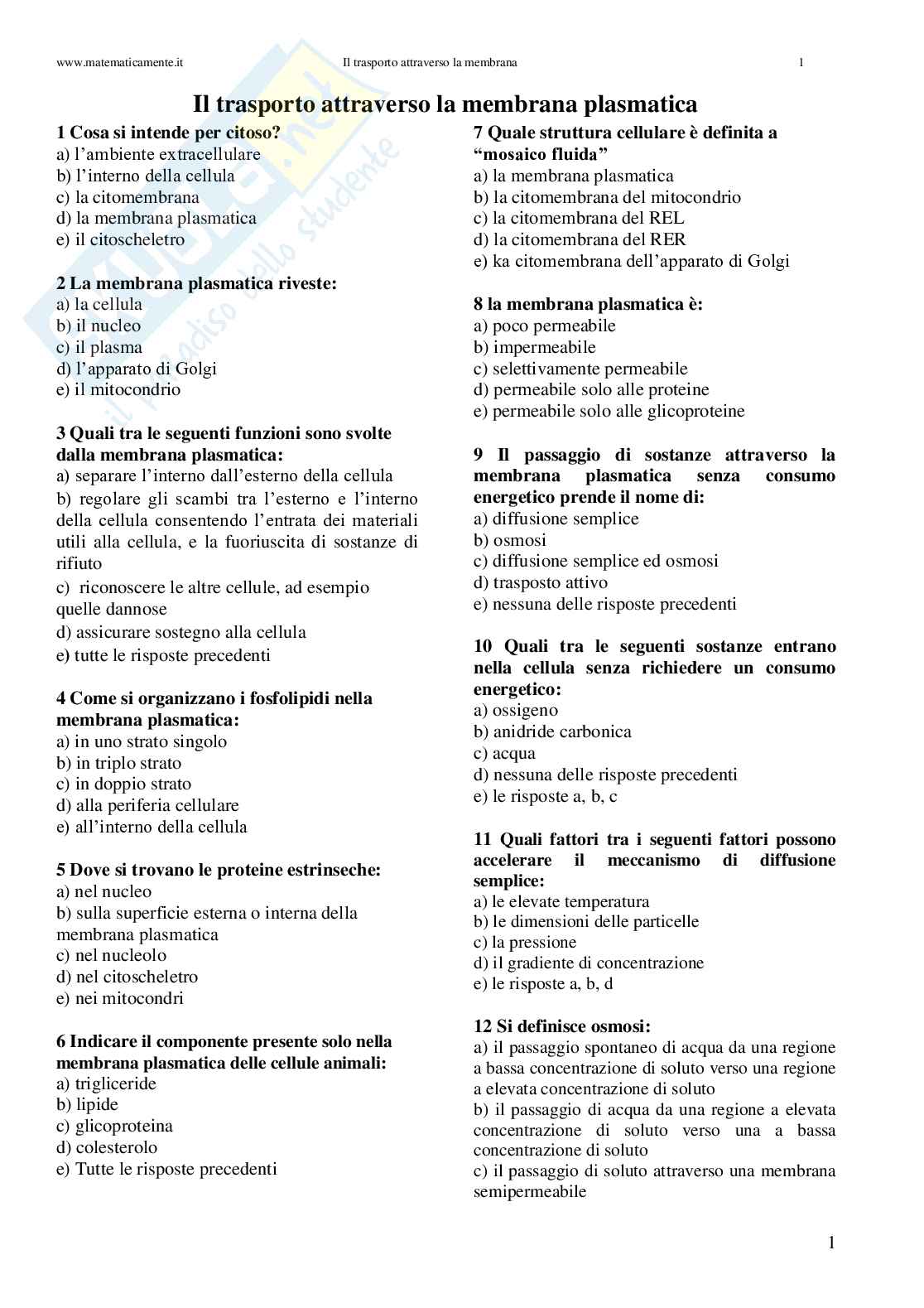 d) plasma e) dovrebbe permettere agli ioni sodio e potassio