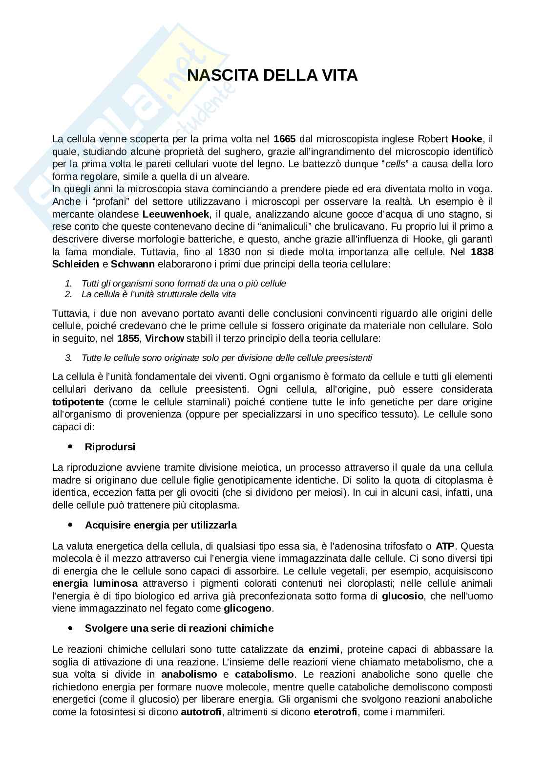 2. La cellula è l’unità strutturale della vita