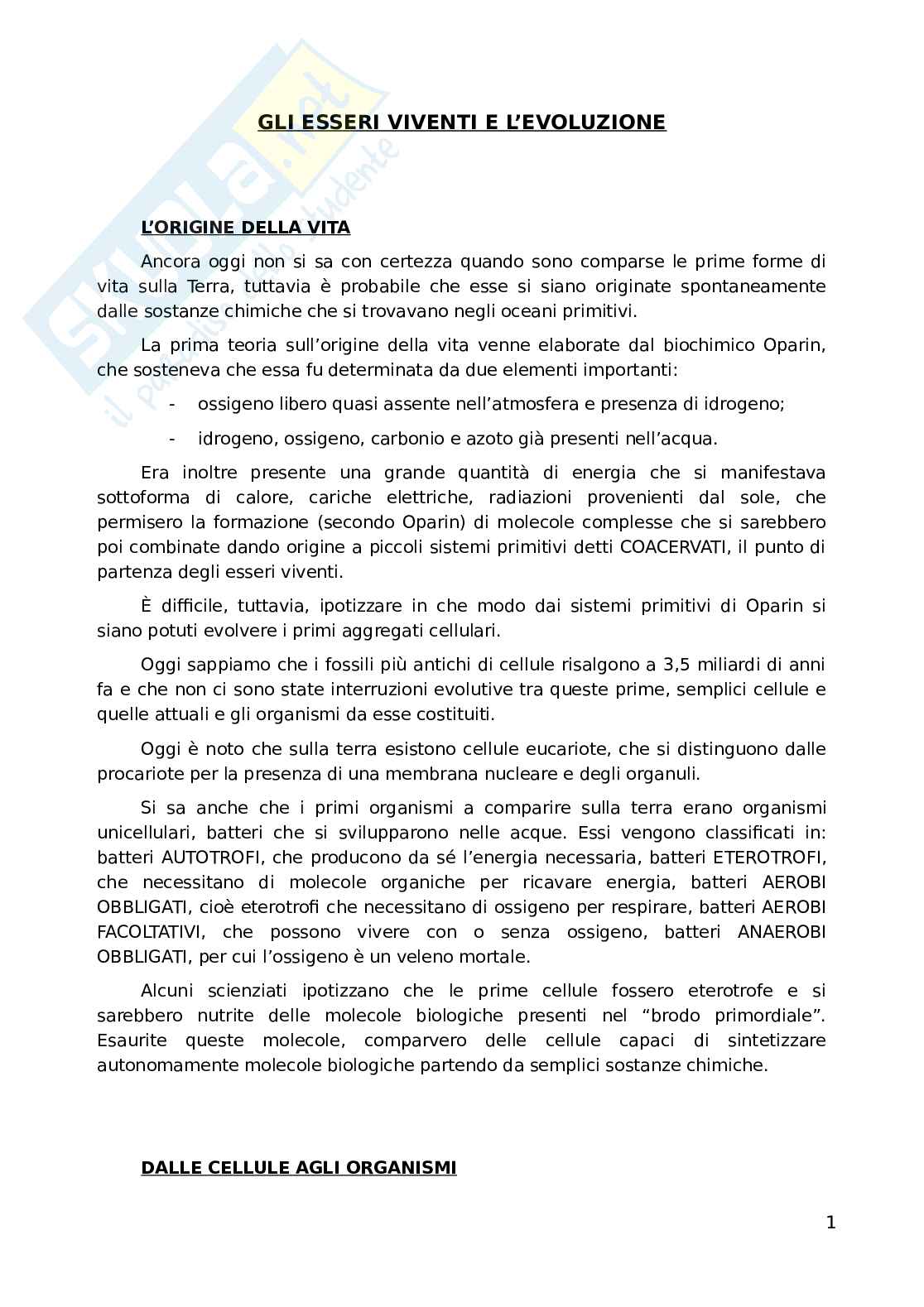 GLI ESSERI VIVENTI E L’EVOLUZIONE