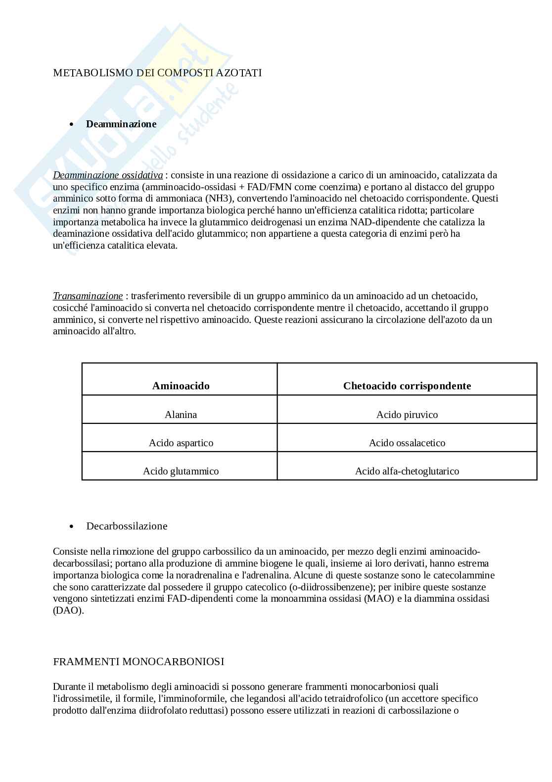 Transaminazione : trasferimento reversibile di un gruppo amminico da un aminoacido ad un chetoacido, cosicché l'aminoacido si converta nel chetoacido corrispondente mentre il chetoacido, accettando il gruppo amminico, si converte nel rispettivo aminoacido. Queste reazioni assicurano la circolazione dell'azoto da un aminoacido all'altro.