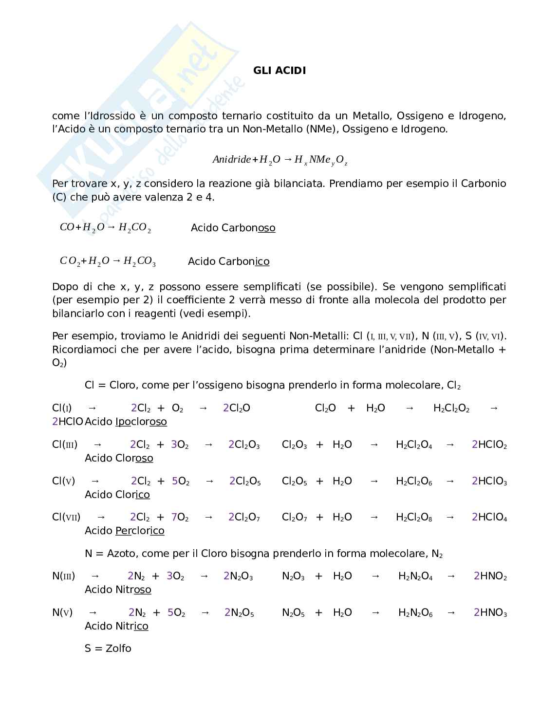 Ricordiamoci che per avere l’acido, bisogna prima determinare l’anidride (Non-Metallo +