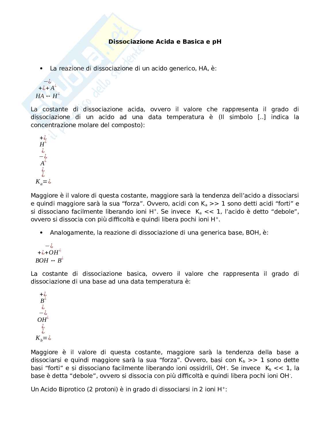 La reazione di dissociazione dell’acqua, H O, produce sia ioni idrogeno, H , che ioni
