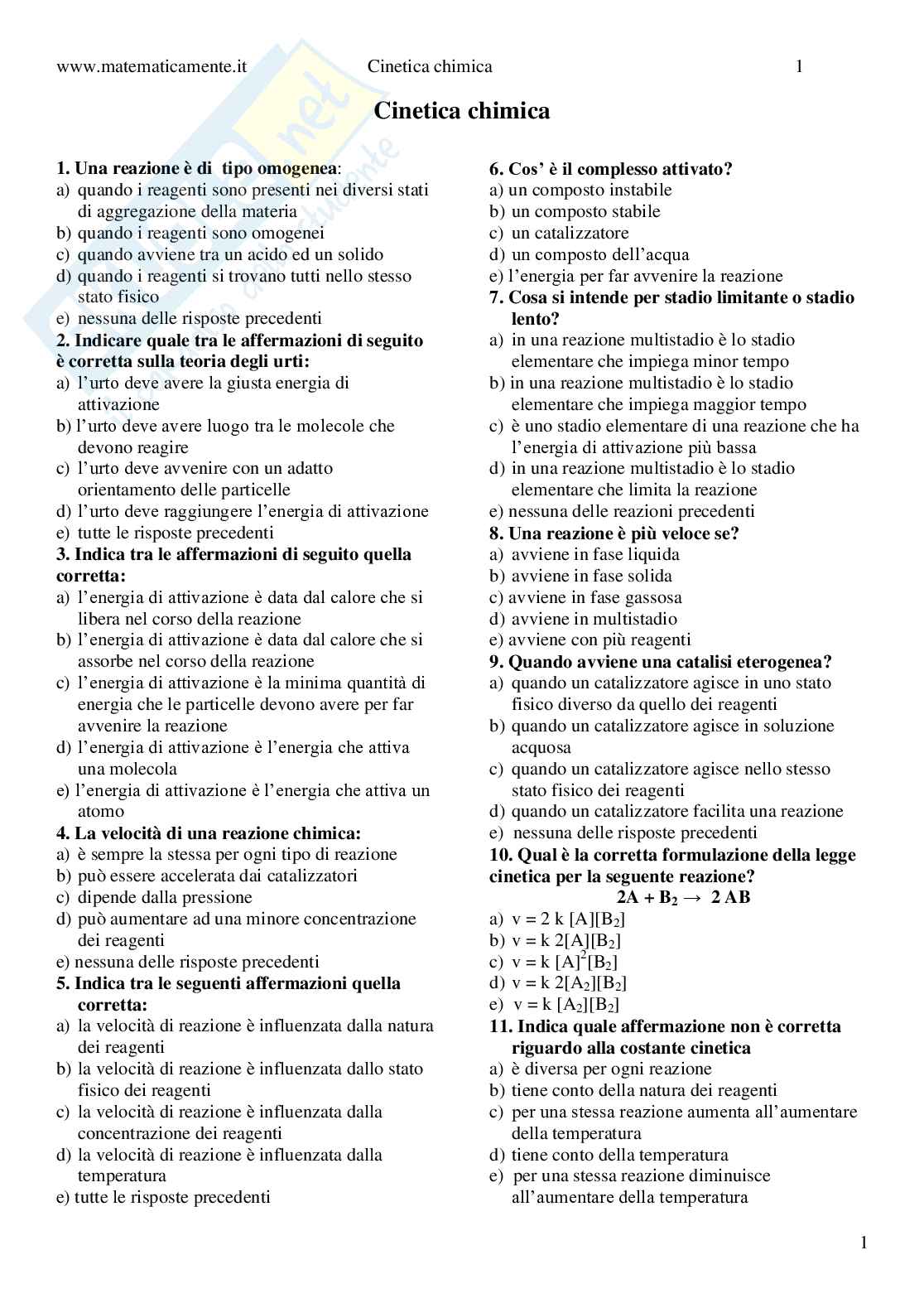 1. Una reazione è di tipo omogenea: 6. attivato?