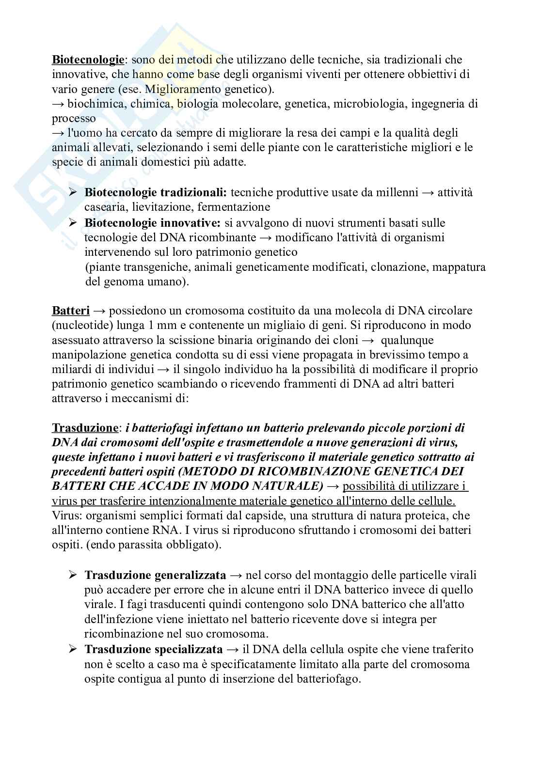 Le Biotecnologie - Riassunto