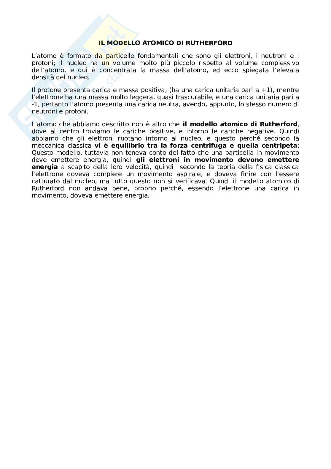 L’atomo che è stato descritto non è altro che il modello atomico di Rutherford, dove al centro si trovano le cariche positive e intorno le cariche negative. Quindi si sa che gli elettroni ruotano intorno al nucleo, e questo perché secondo la meccanica classica vi è equilibrio tra la forza centrifuga e quella centripeta; Questo modello tuttavia non teneva conto del fatto che una particella in movimento deve emettere energia, quindi gli elettroni in movimento devono emettere energia a scapito della loro velocità, quindi secondo la teoria della fisica classica l’elettrone doveva compiere un movimento a spirale, e doveva finire con l’essere catturato dal nucleo, ma tutto questo non si verificava. Quindi il modello atomico di Rutherford non andava bene, proprio perché, essendo l’elettrone una carica in movimento, doveva emettere energia.