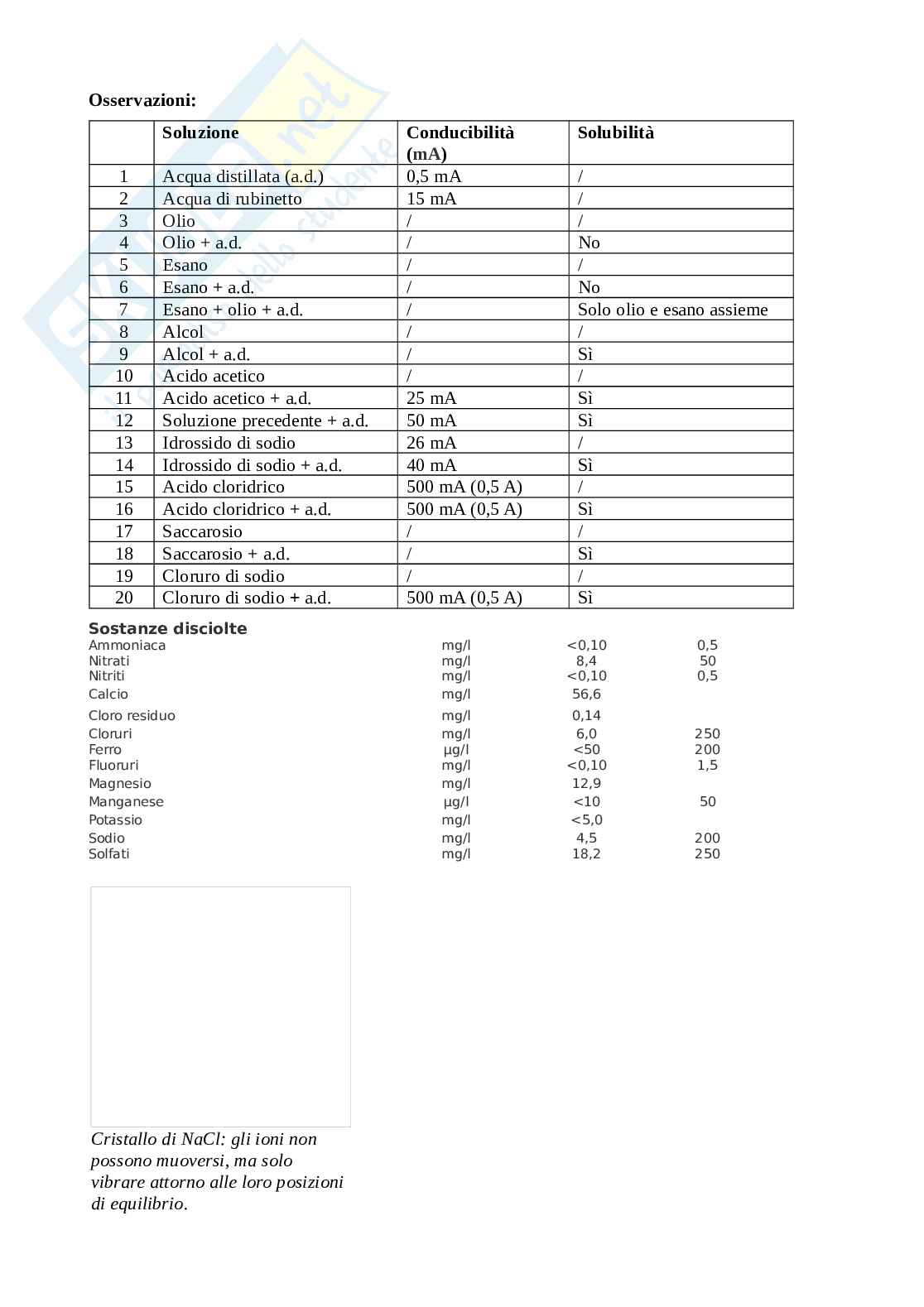 Soluzione Conducibilità Solubilità
