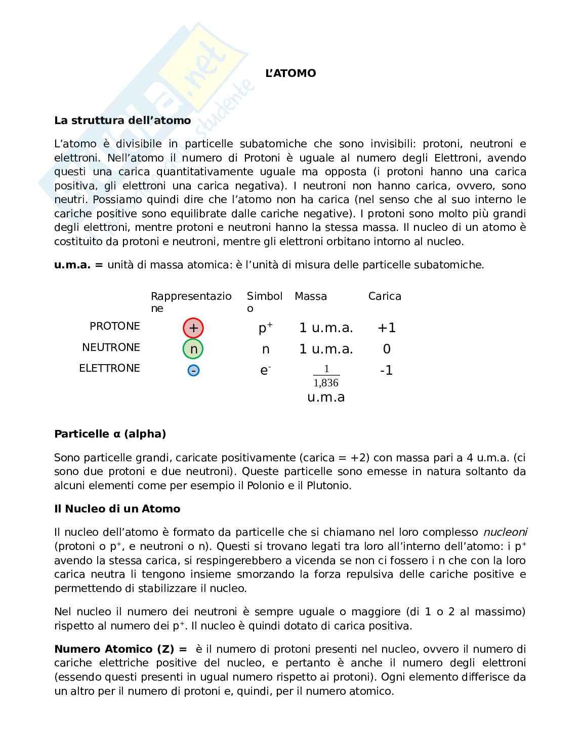 Nel nucleo il numero dei neutroni è sempre uguale o maggiore (di 1 o 2 al massimo) rispetto al numero dei p+. Il nucleo è quindi dotato di carica positiva.
