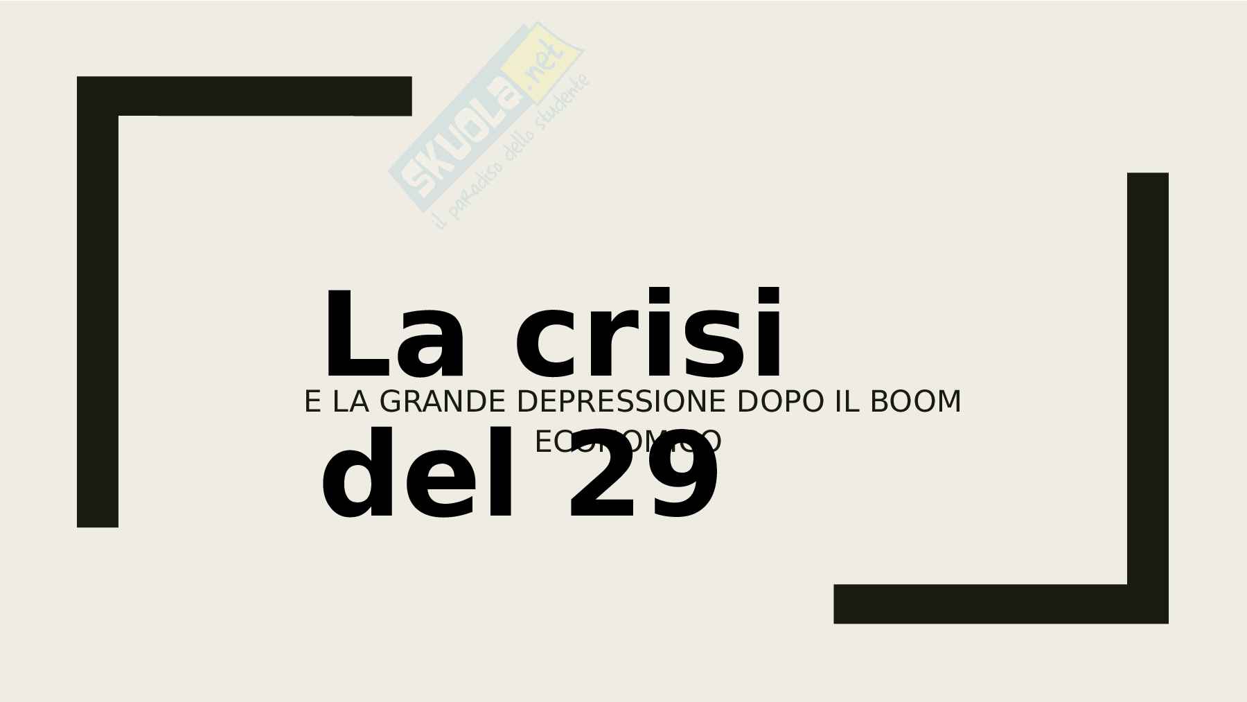 Dopo la 1° guerra mondiale inizia una grave crisi economica che colpisce tutte le economie avanzate e in modo particolare gli Stati Uniti che fino a quel momento erano la la 1°potenza economica mondiale, ma una volta superato questo duro momento l’economia statunitense ricomincia a crescere.