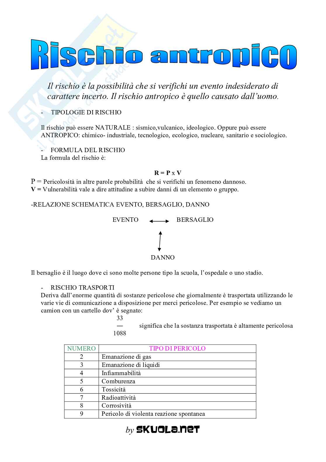 carattere incerto. Il rischio antropico è quello causato dall’uomo .