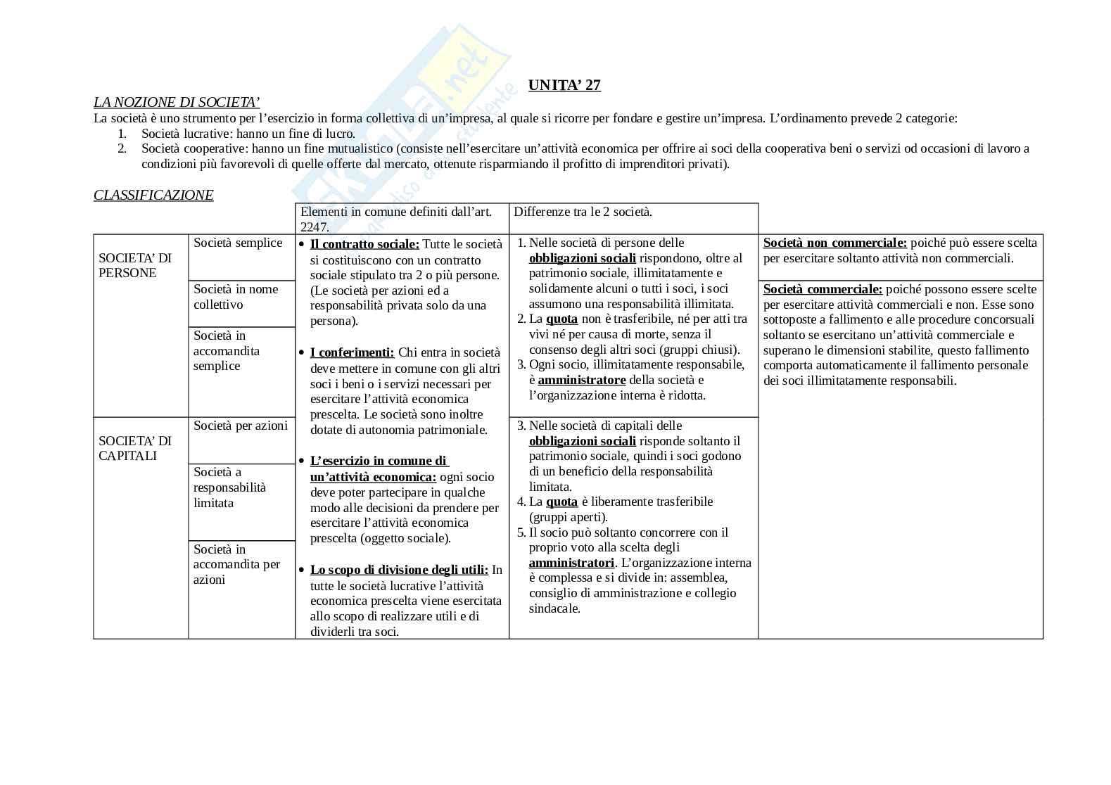La società è uno strumento per l’esercizio in forma collettiva di un’impresa, al quale si ricorre per fondare e gestire un’impresa. L’ordinamento prevede 2 categorie: