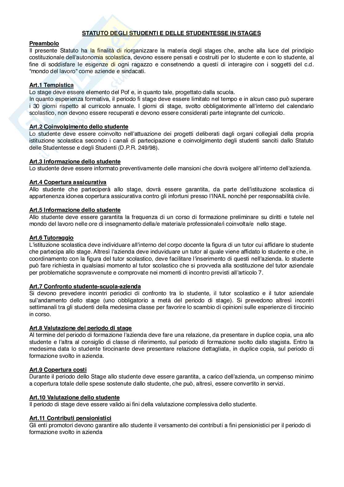 Statuto per gli studenti in stage redato dal Consiglio d’Istituto dell’Alberghiero (IPSSA) Nino Bergese di Genovaper tutelare gli studenti impegnati in percorsi di stages.