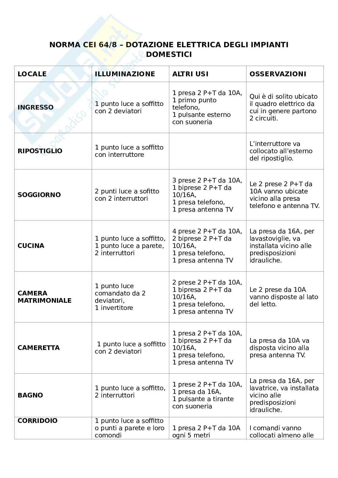 NORMA CEI 64/8 – DOTAZIONE ELETTRICA DEGLI IMPIANTI