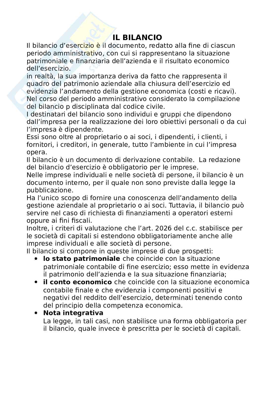 in realtà, la sua importanza deriva da fatto che rappresenta il quadro del patrimonio aziendale alla chiusura dell’esercizio ed evidenzia l’andamento della gestione economica (costi e ricavi).