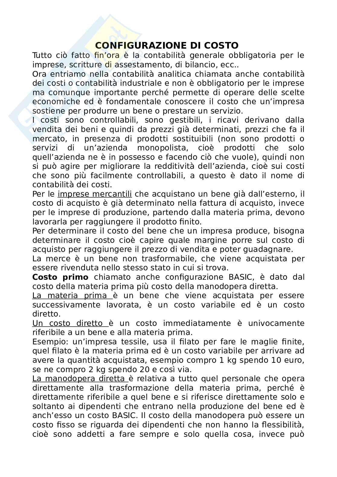 Costo primo chiamato anche configurazione BASIC, è dato dal costo della materia prima più costo della manodopera diretta.