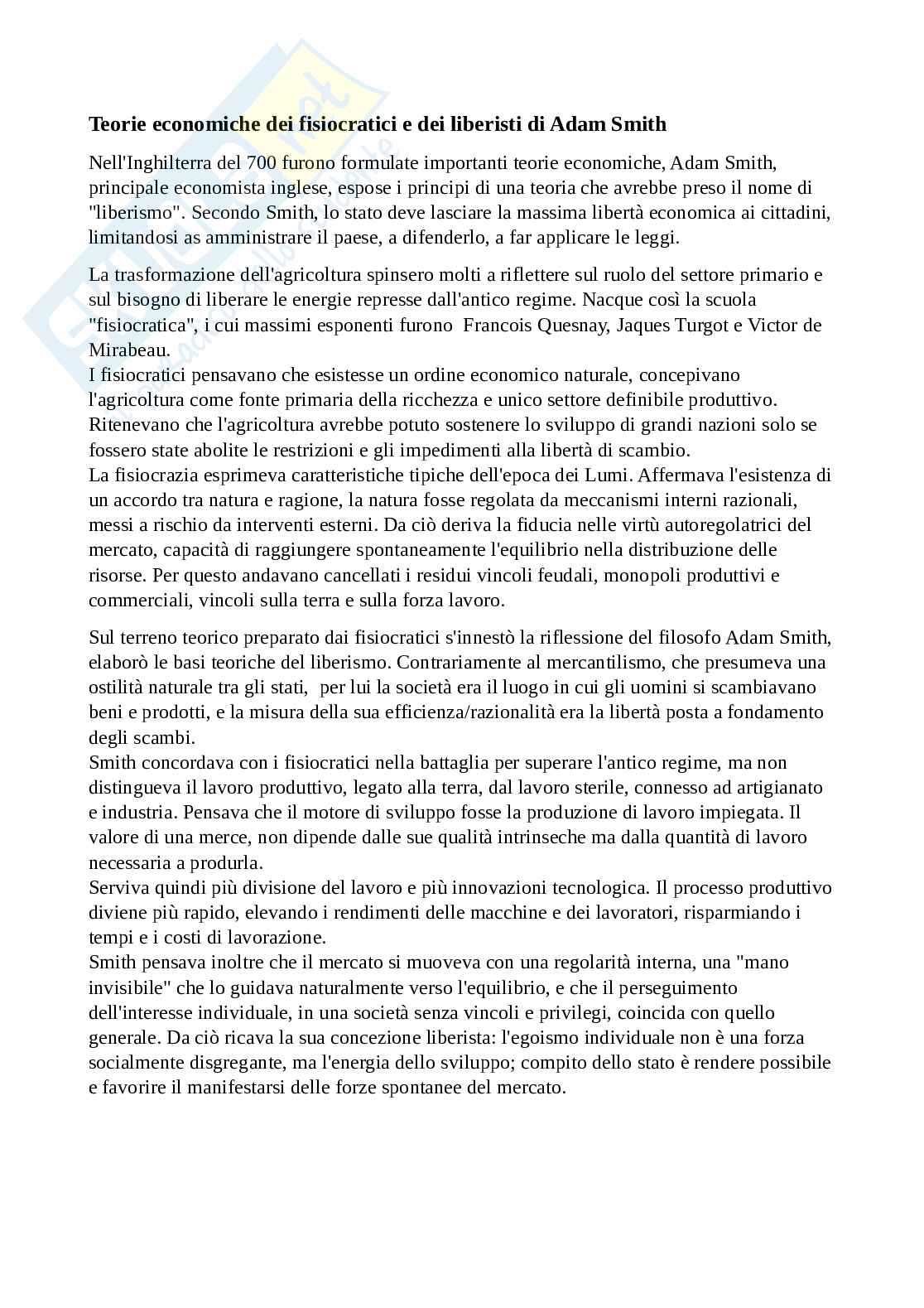 Teorie economiche dei fisiocratici e dei liberisti di Adam Smith