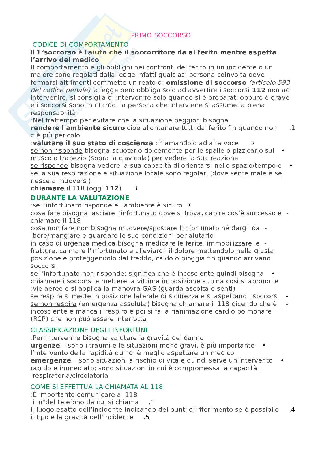 Il 1°soccorso è l'aiuto che il soccorritore da al ferito mentre aspetta l’arrivo del medico