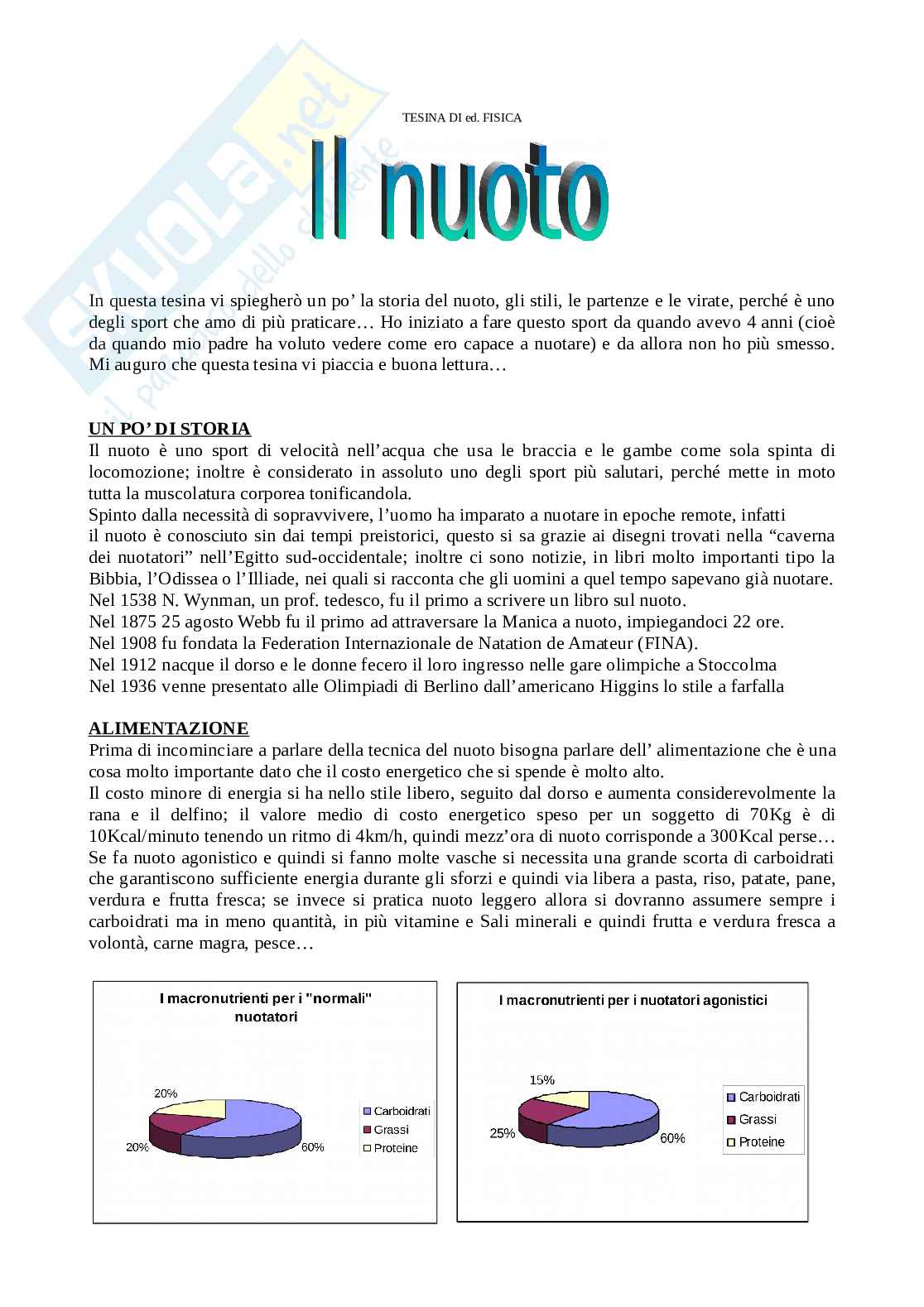 Appunto di ed. motoria per le scuole medie che fornisce in allegate una tesina che sviluppa la tematica del nuoto.