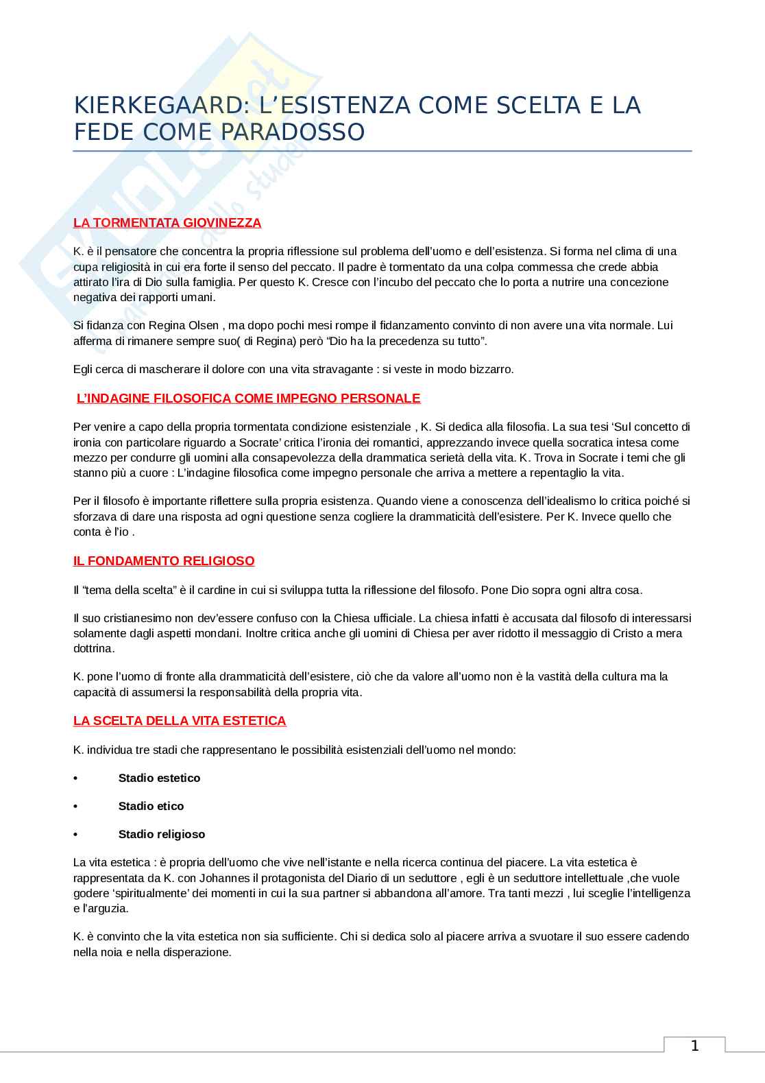 K. è il pensatore che concentra la propria riflessione sul problema dell’uomo e dell’esistenza. Si forma nel clima di una