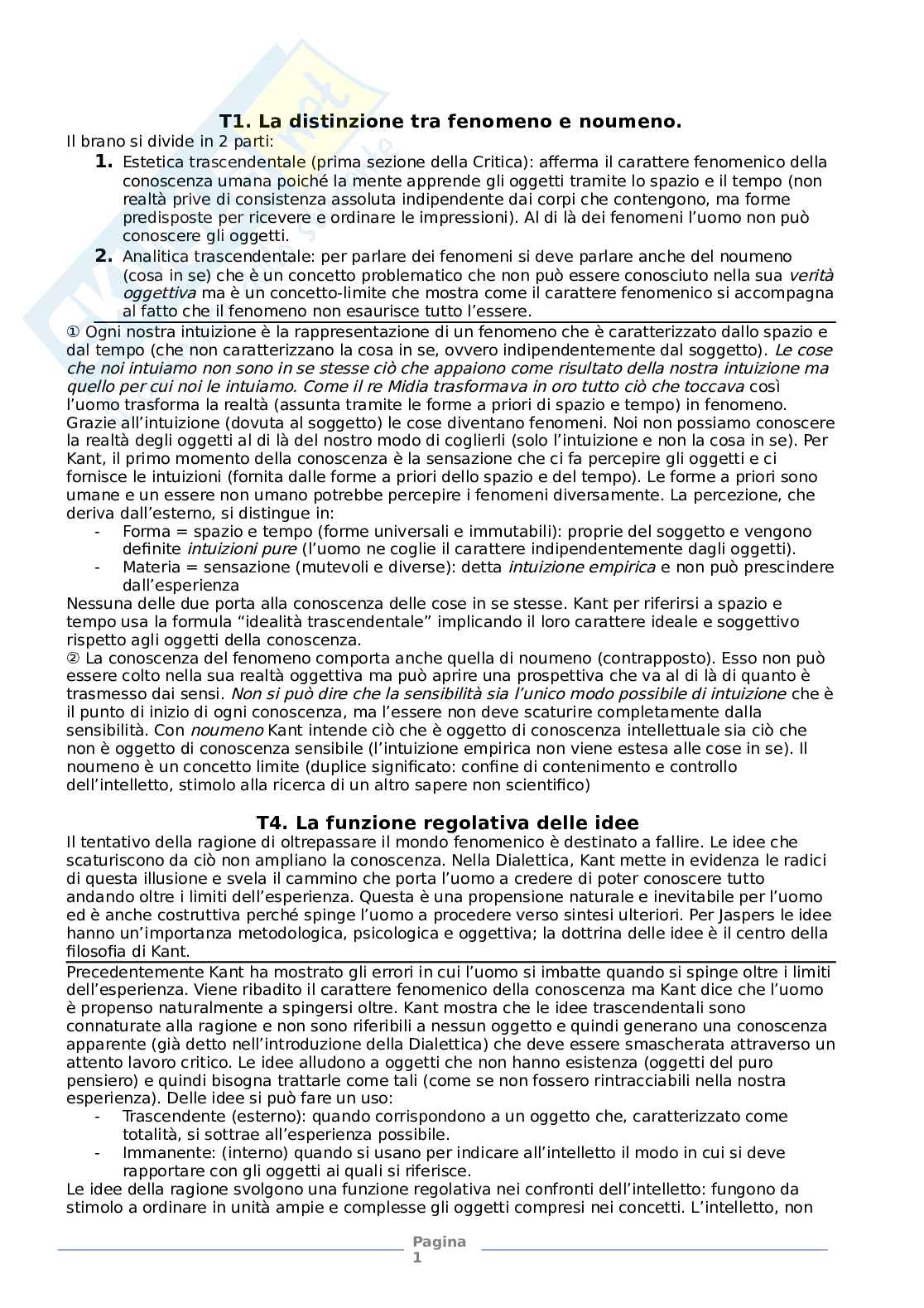 T1. La distinzione tra fenomeno e noumeno.