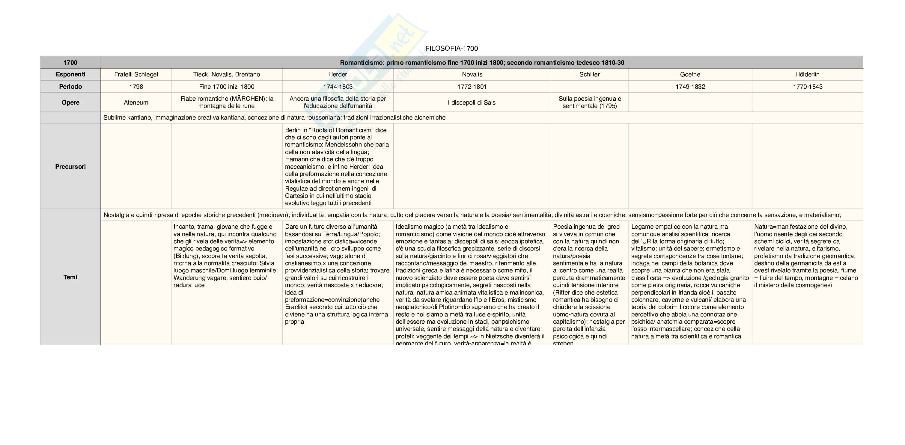 Romanticismo - Tabella Riassuntiva e Introduzione