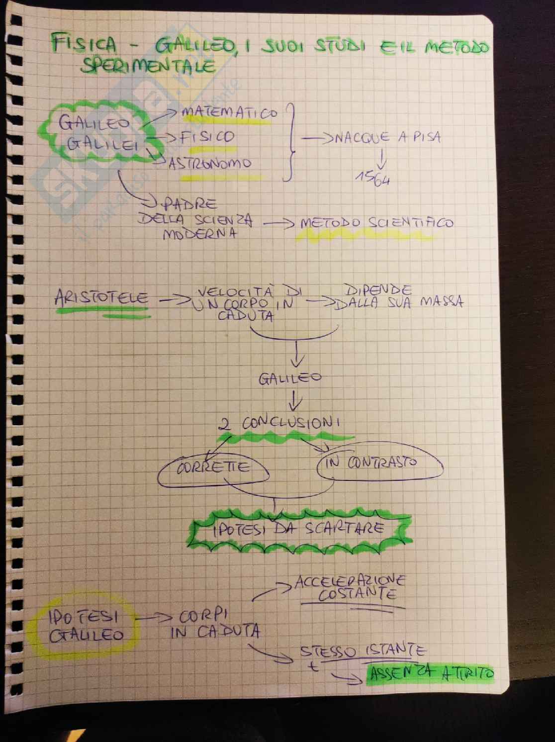 - Formulazione di un’ipotesi: Tutti i corpi lasciati cadere da una certa altezza atterrano nello stesso istante di tempo e con accelerazione costante se il loro moto non è influenzato dall’attrito con l’aria;