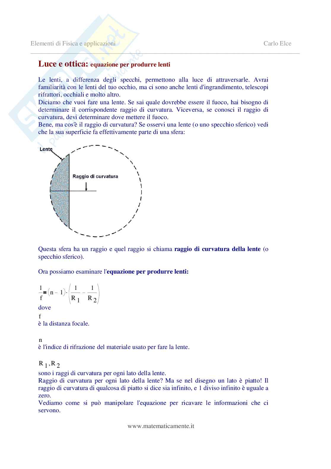 Luce e ottica: equazione per produrre lenti