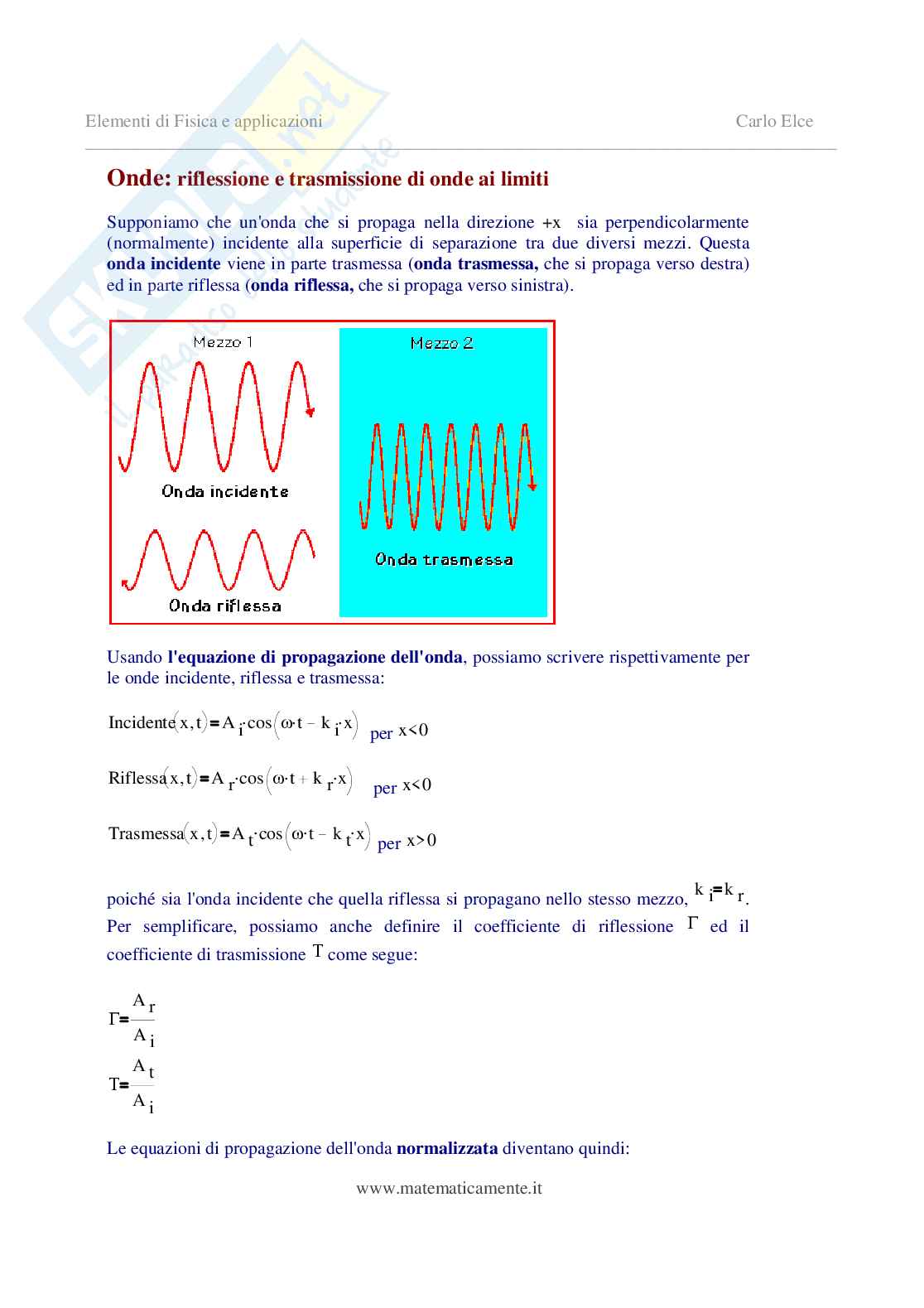 Onde: riflessione e trasmissione di onde ai limiti
