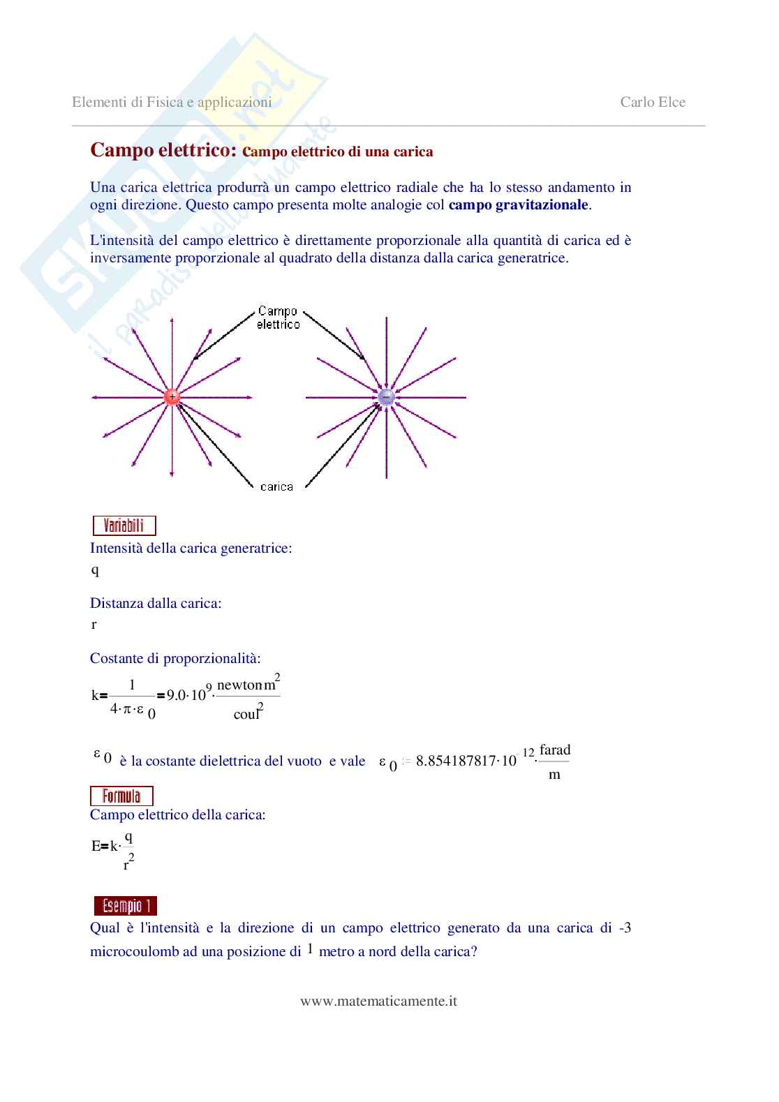 Campo elettrico della carica: