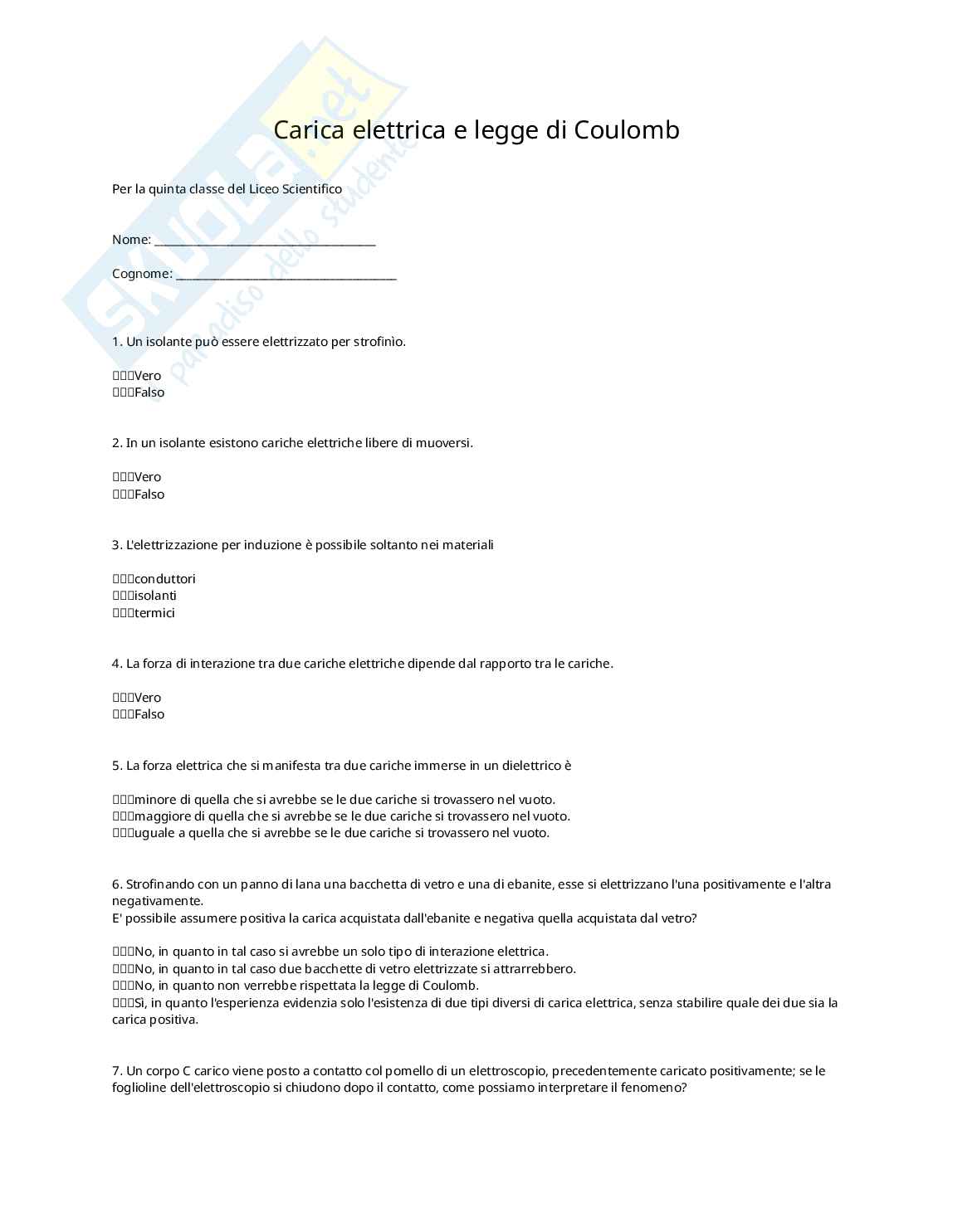 Carica elettrica e legge di Coulomb
