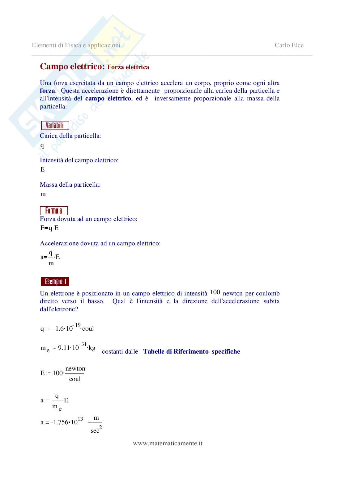 Elementi di Fisica e applicazioni Carlo Elce