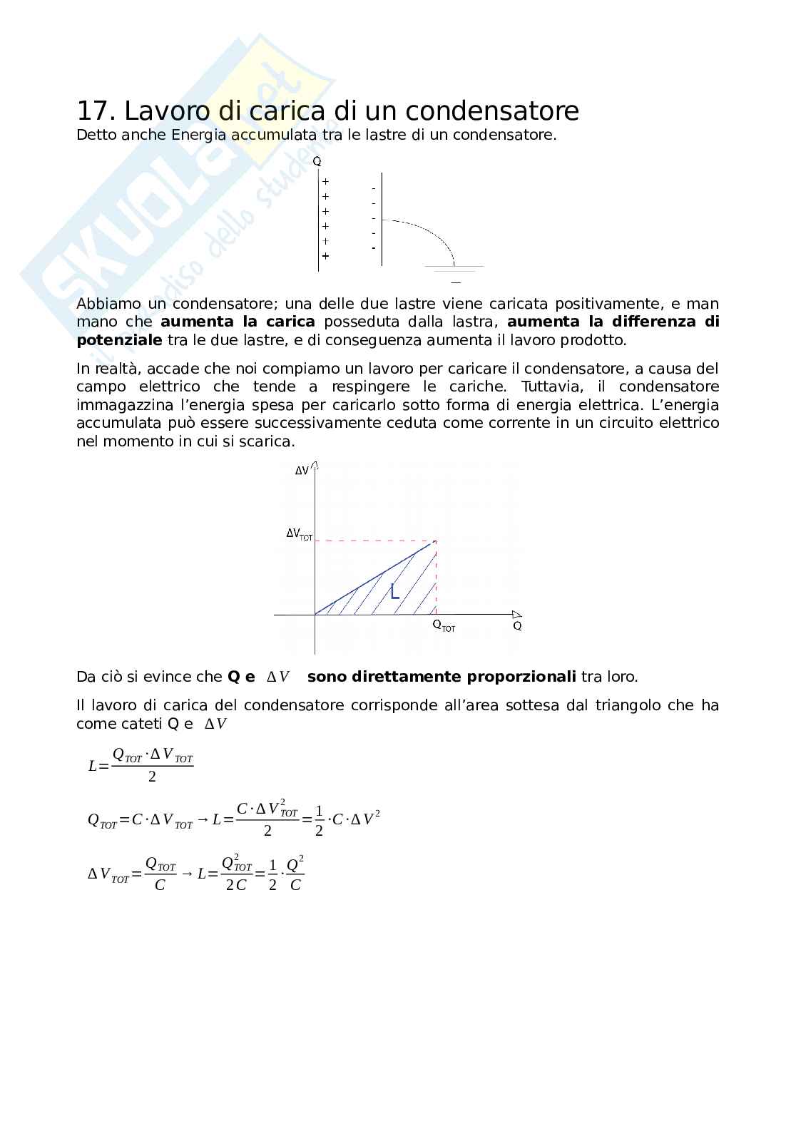Il lavoro di carica del condensatore corrisponde all’area sottesa dal triangolo che ha come cateti Q e ∆V