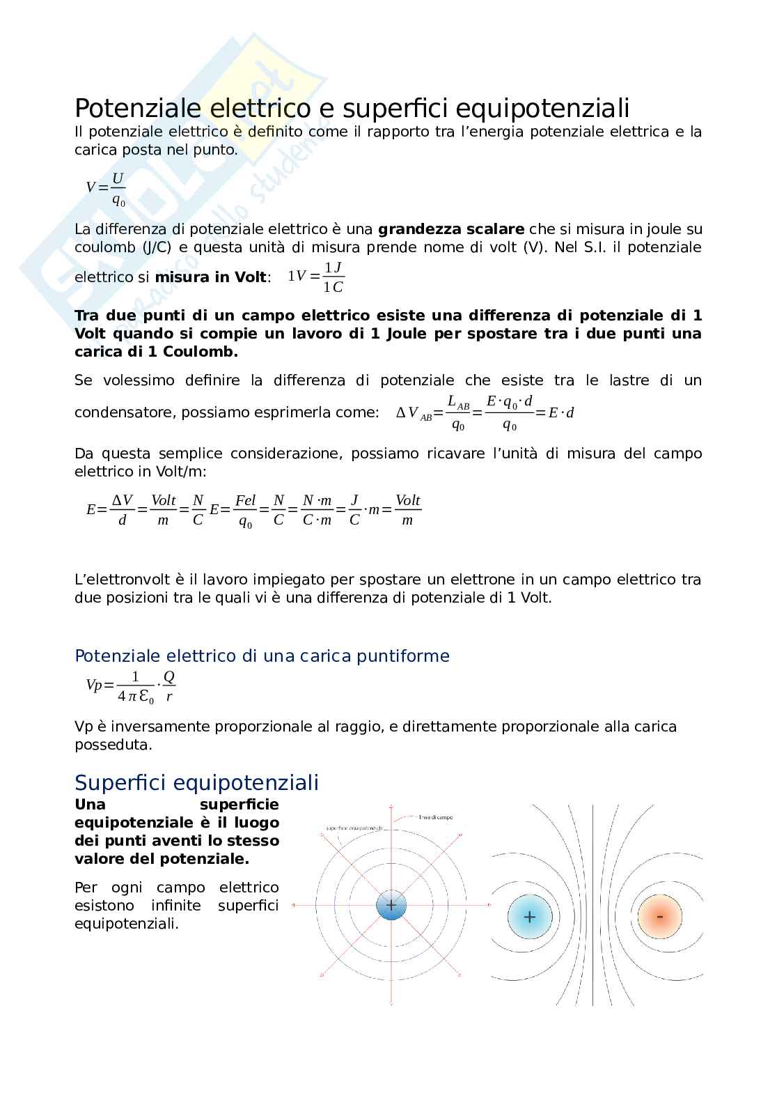 Potenziale elettrico e superfici equipotenziali