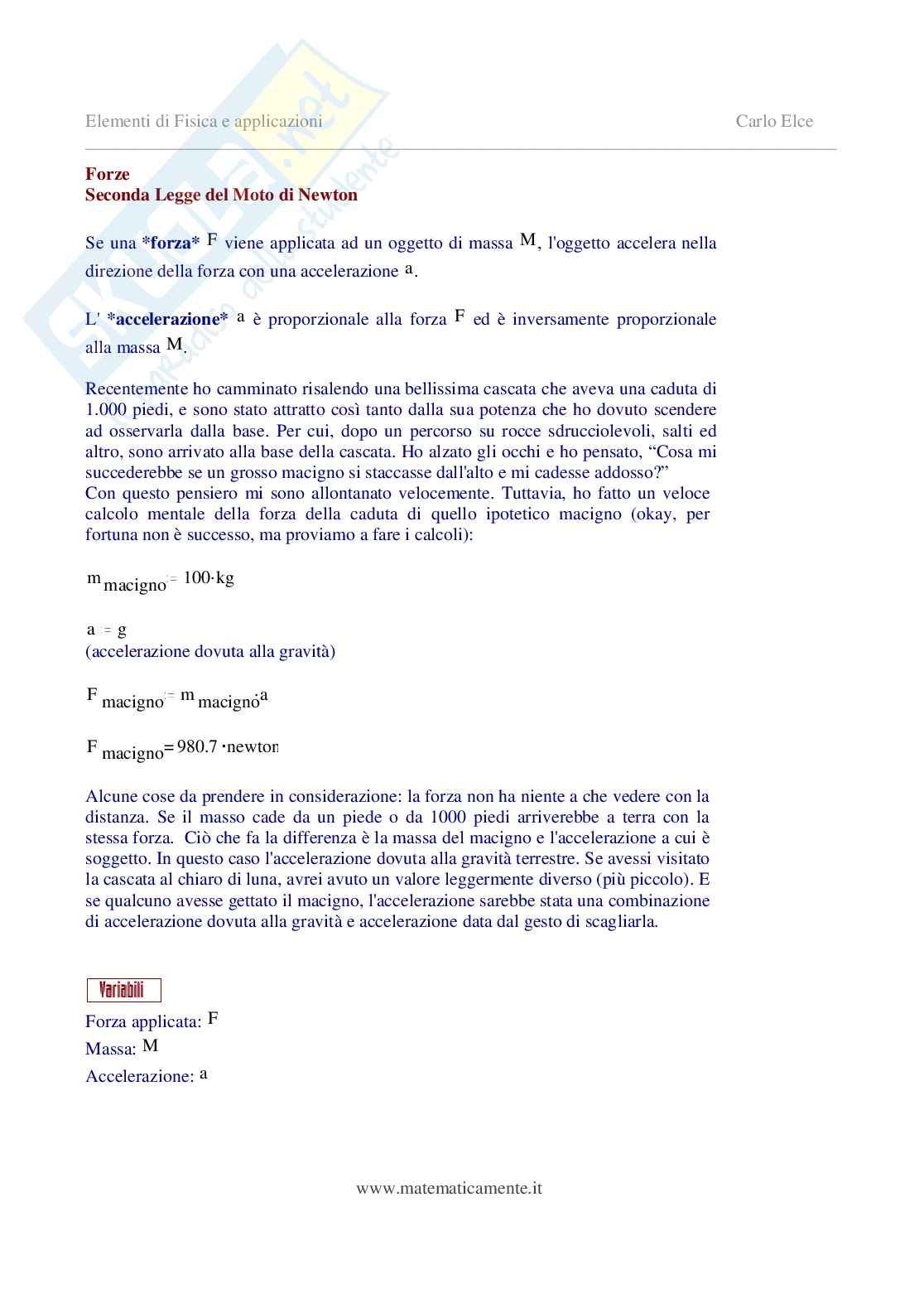 Se una *forza* viene applicata ad un oggetto di massa , l'oggetto accelera nella
